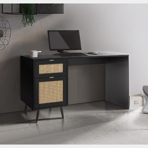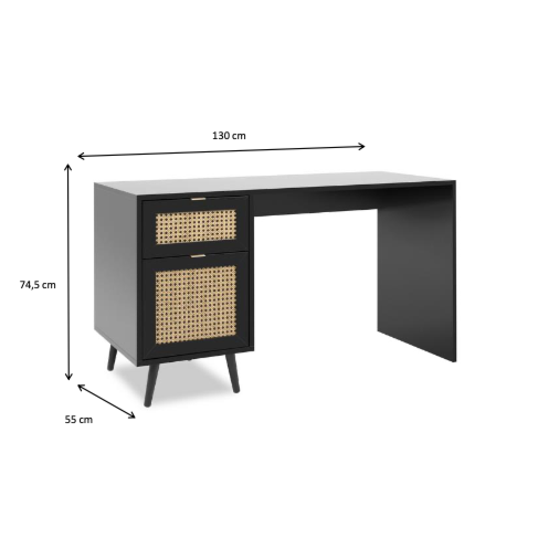 Scrivania Arendal con cassettiera, finitura Nero con dettagli Oro