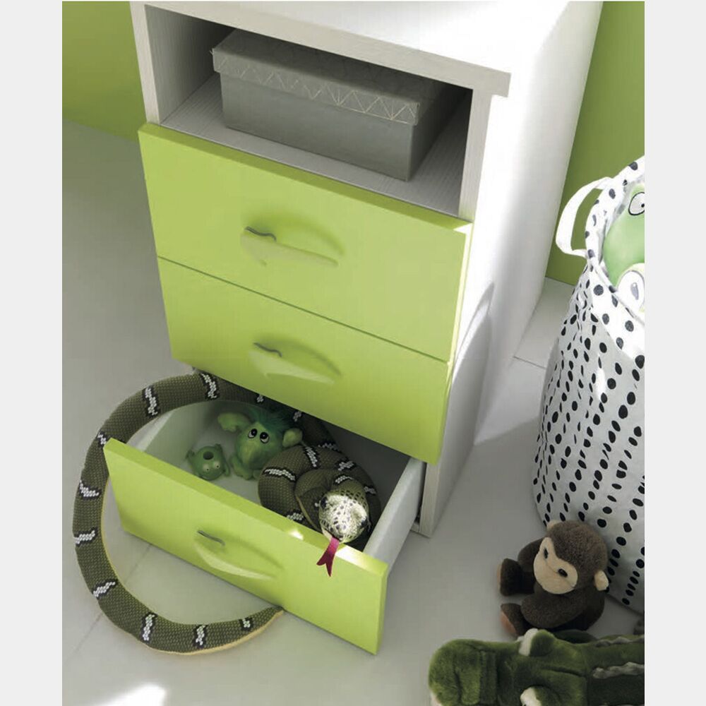 La capiente cassettiera ha una portata di 25 Kg, perfetta e funzionale per ogni cameretta.