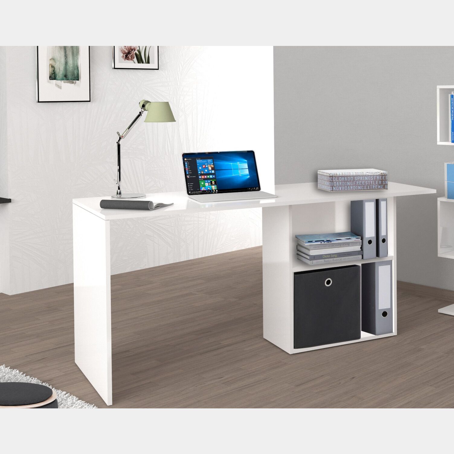 Scrivania bianco lucido, con vani contenitore, made in Italy