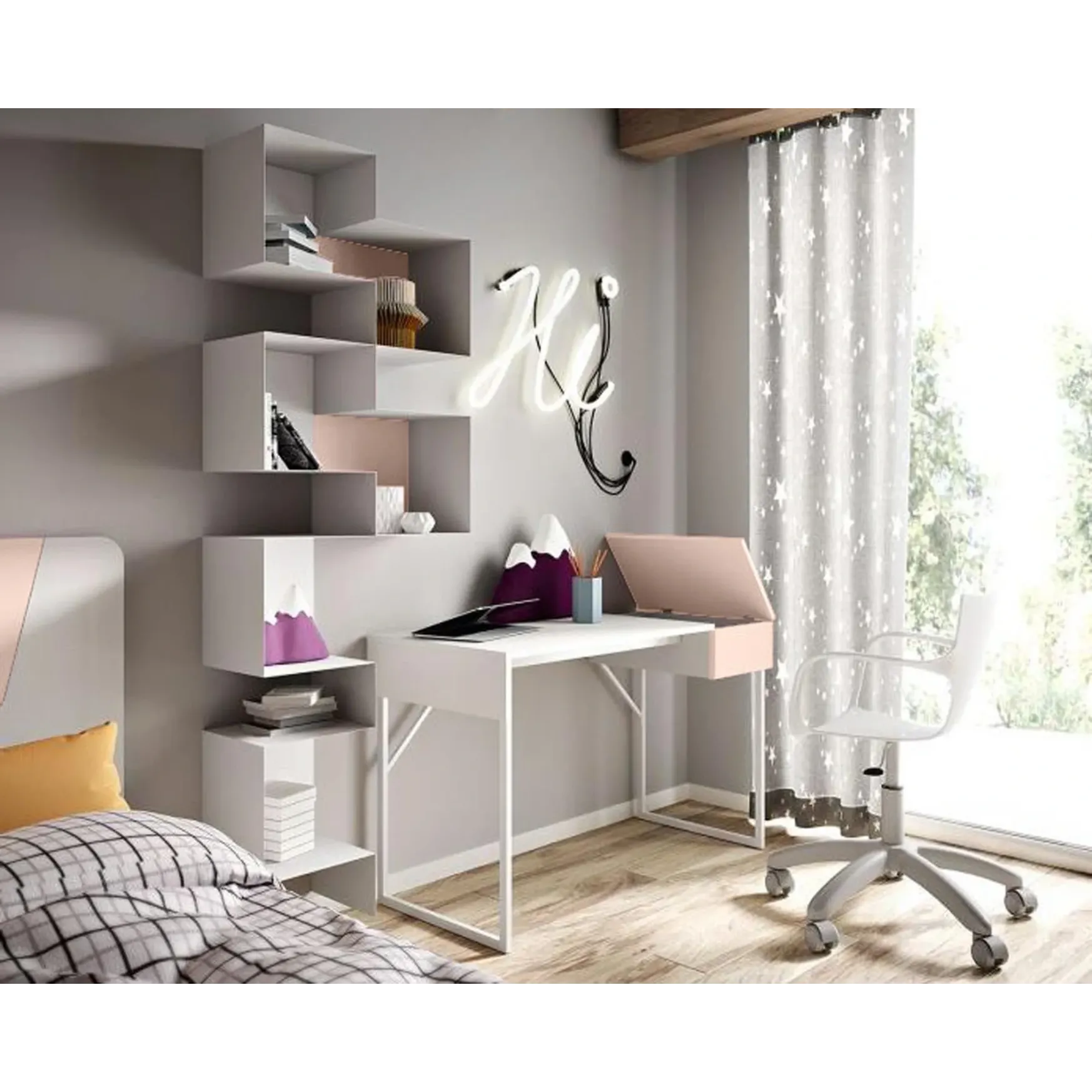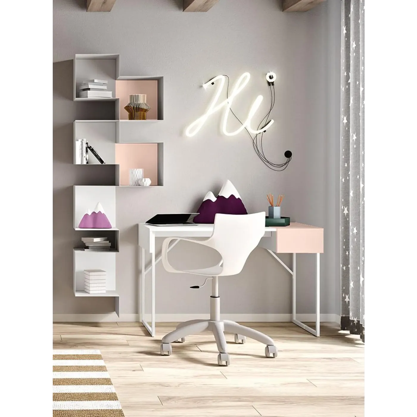 Abbiamo pensato ad un design innovativo che offrisse comodità senza limitarne l'estetica, per questo la scrivania Calamaio presenta una colorata ribalta cipria larga 32 cm.