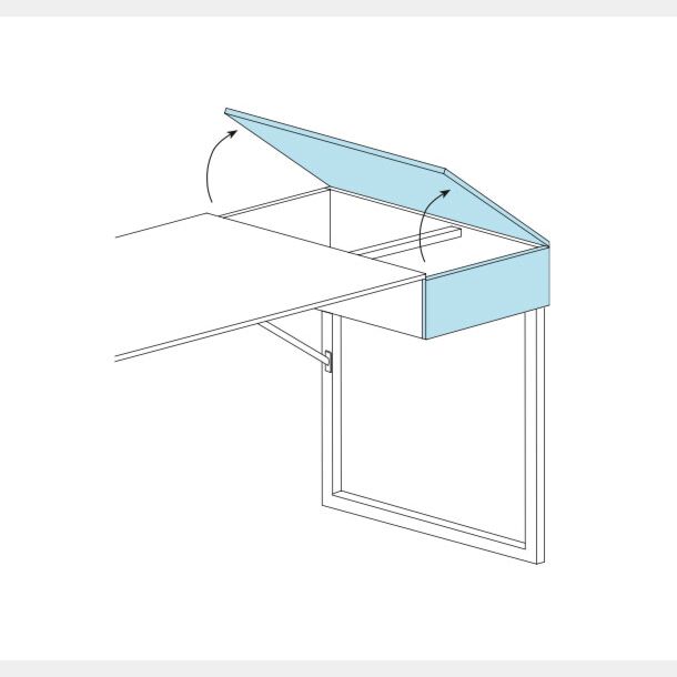Garantiamo un ampio spazio di appoggio per lavorare e un vano segreto per riporre oggetti. Il piano è disponibile in Bianco frassino oppure Rovere ambra, l'anta invece ha un'ampia scelta di colori.