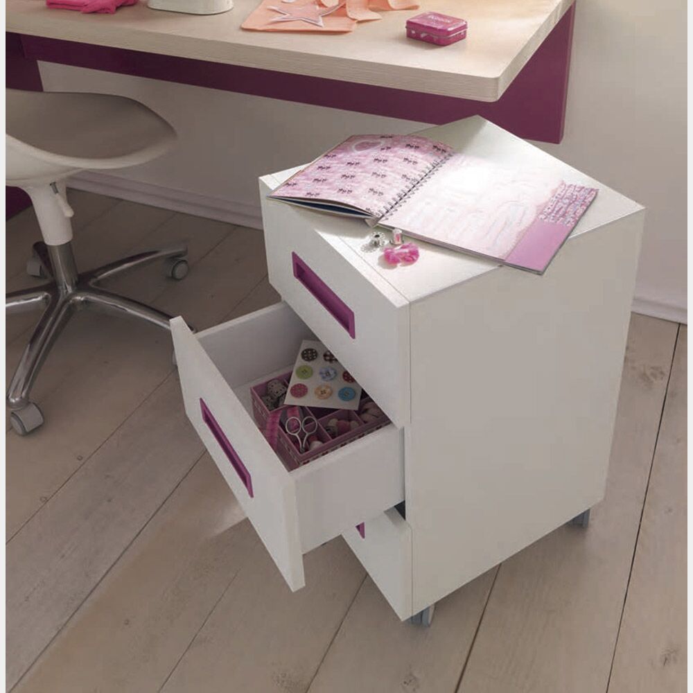 Come optional è possibile richiedere la cassettiera a 3 cassetti (L.38.4 H.65.6 P.40.8) e la sedia con ruote (L.68 H.82,5/92 P.68).