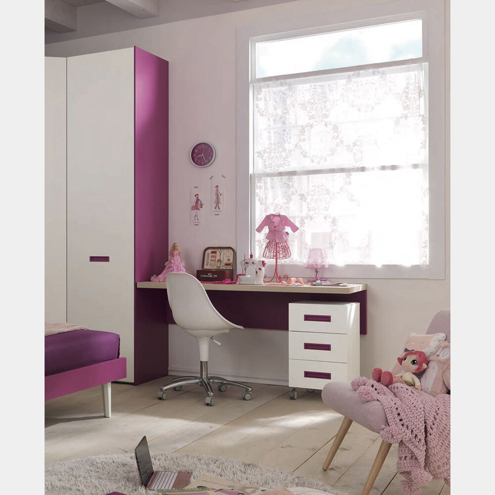 Scrivania camerette sospesa Moretti Compact, Larice e Ciclamino laccato