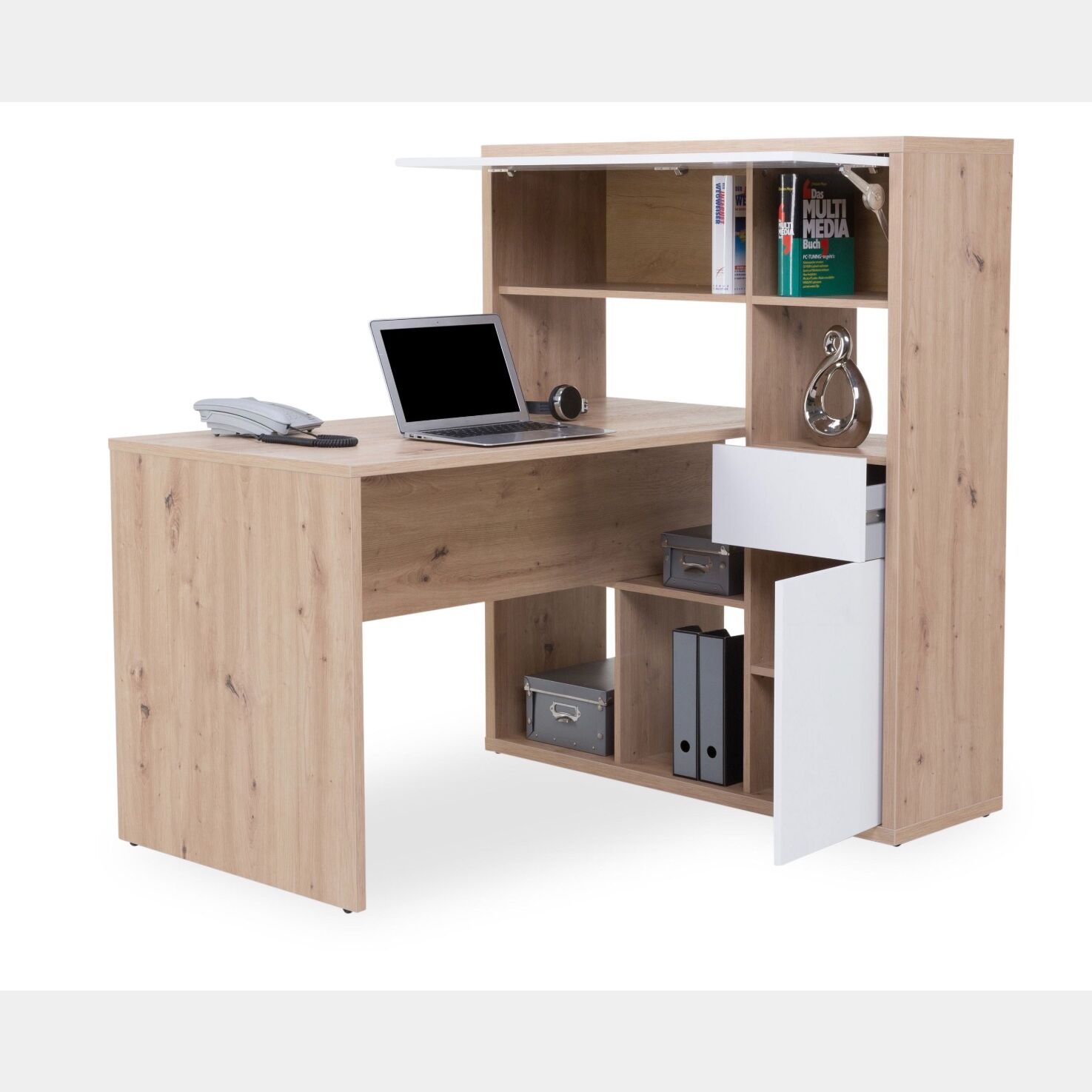 Moderna e capiente scrivania realizzata nella finitura Rovere e Bianco laccato dal design semplice e innovativo.