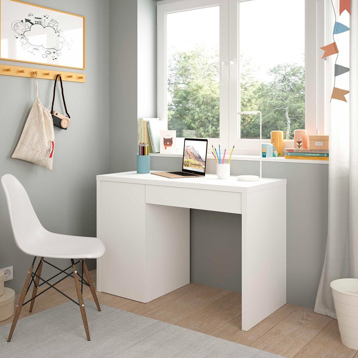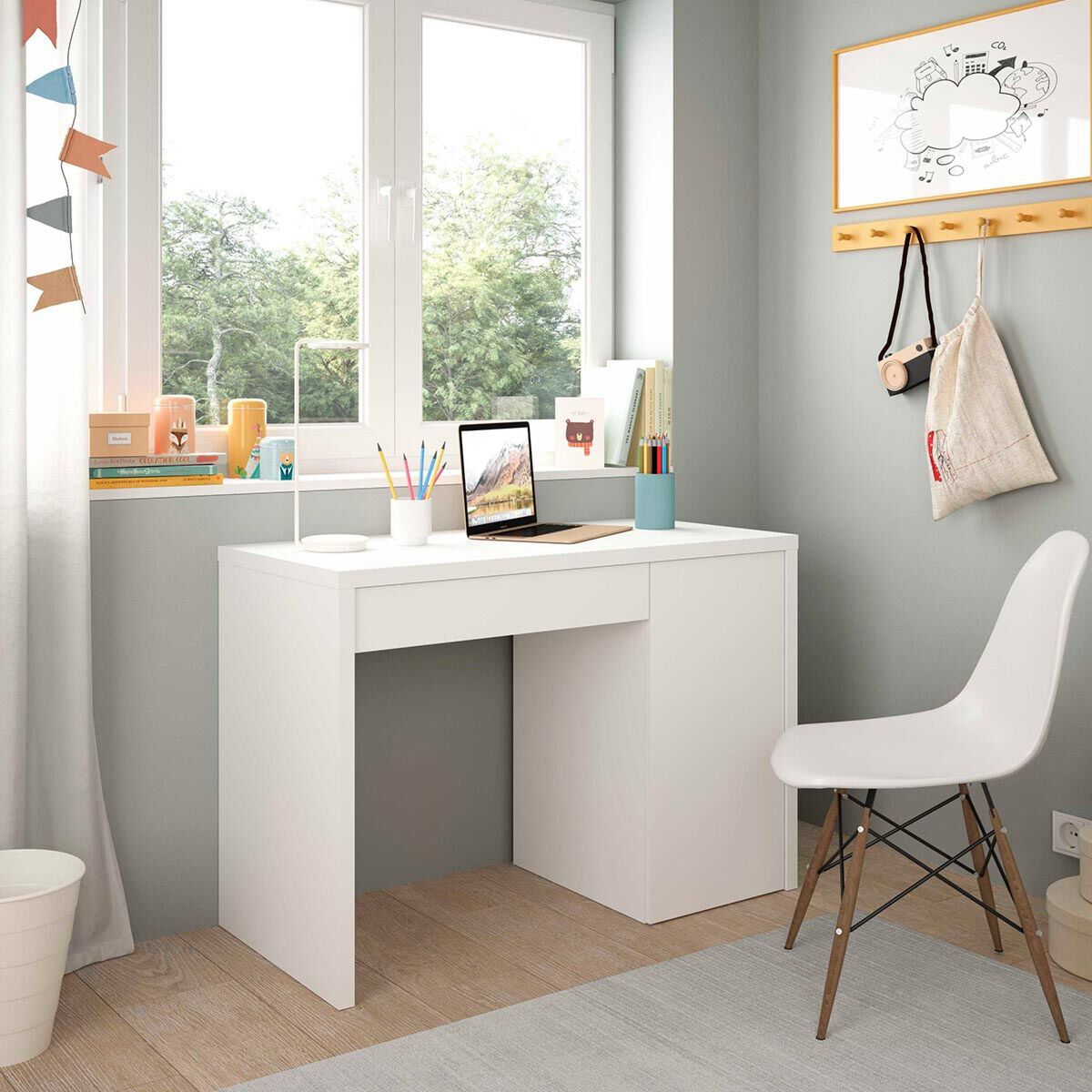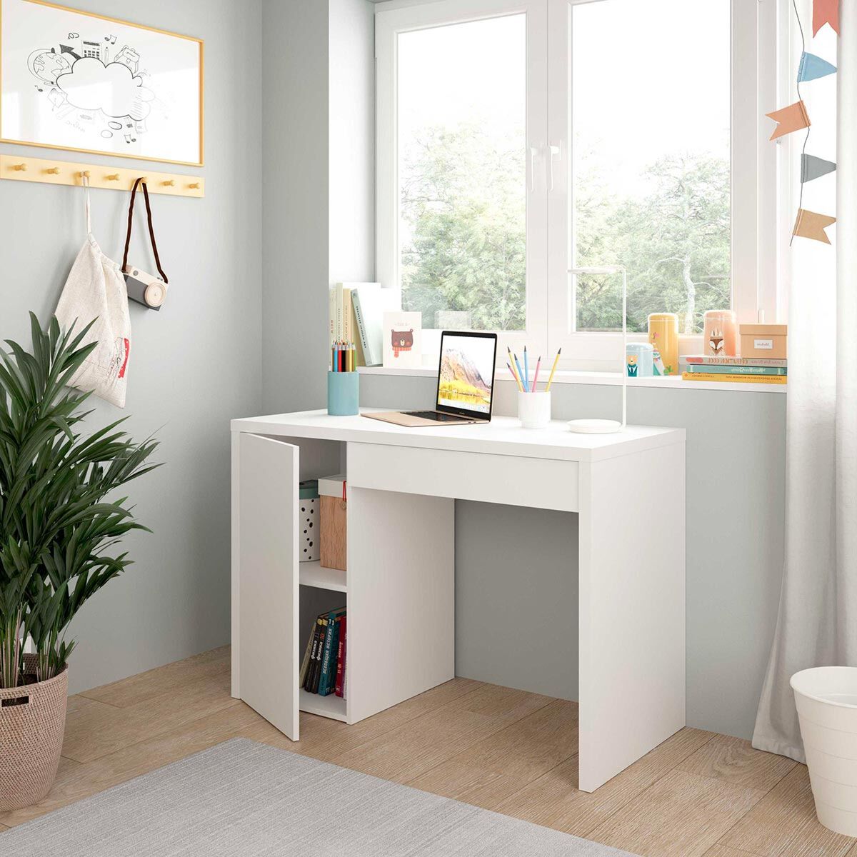 Scrivania con anta e cassetto design moderno, finitura Bianco opaco