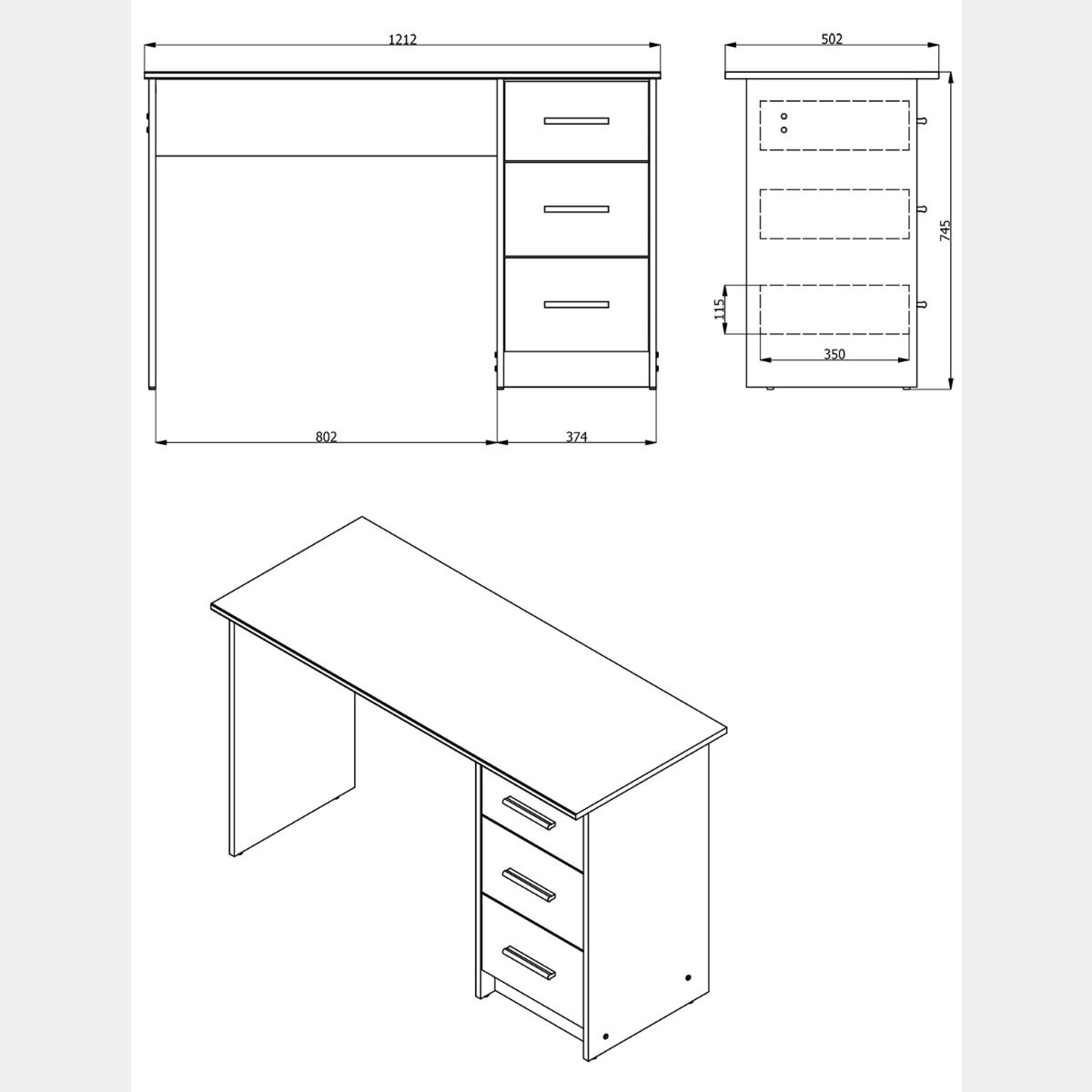 • Misure scrivania: L.121,2 P.50,2 H.74.5 cm