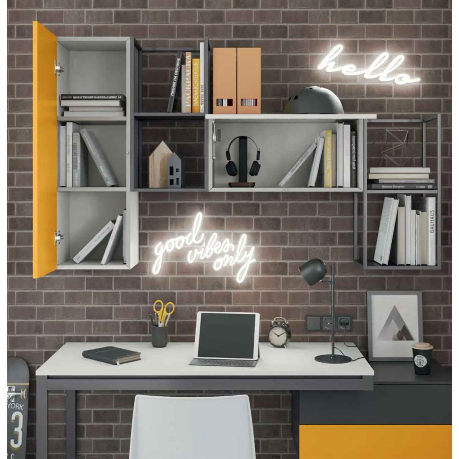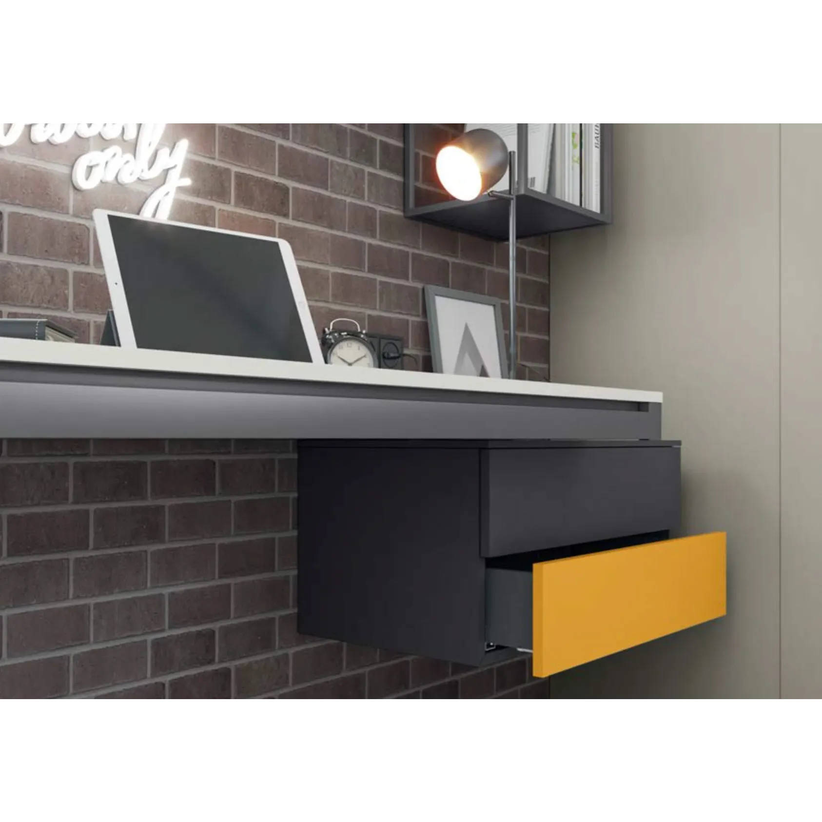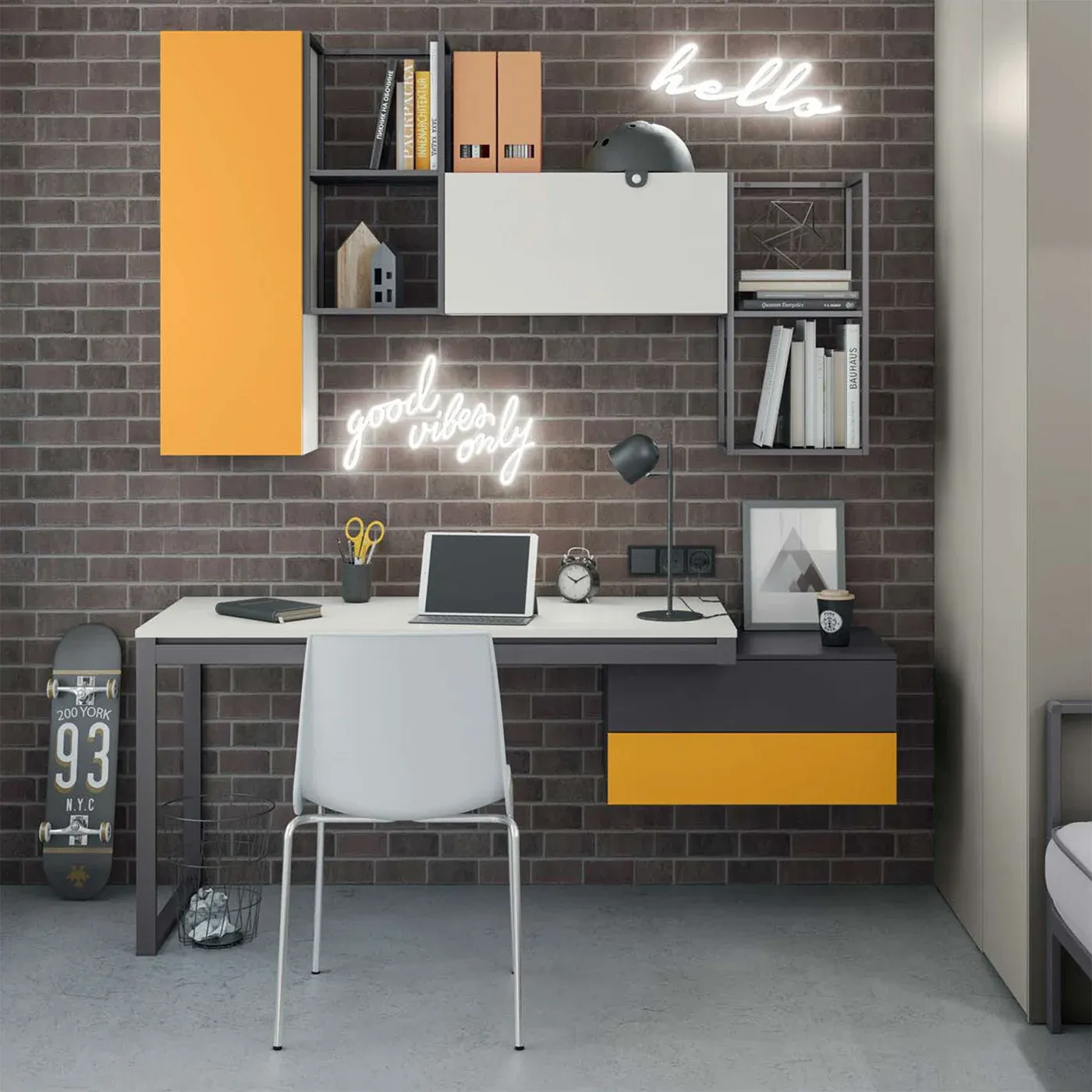 Scrivania con cassettiera ragazzi, Bianco luce, Antracite e Ocra