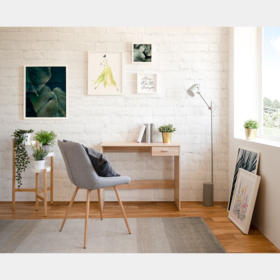 Scrivania moderna con cassetto laterale, utile per posizionare un computer e lavorare in piena comodità.