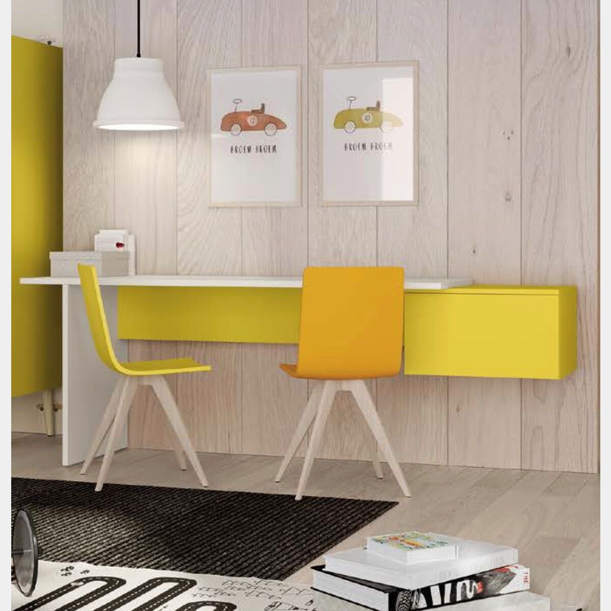 Scrivania con pensile, finitura Bianco opaco e Giallo zafferano