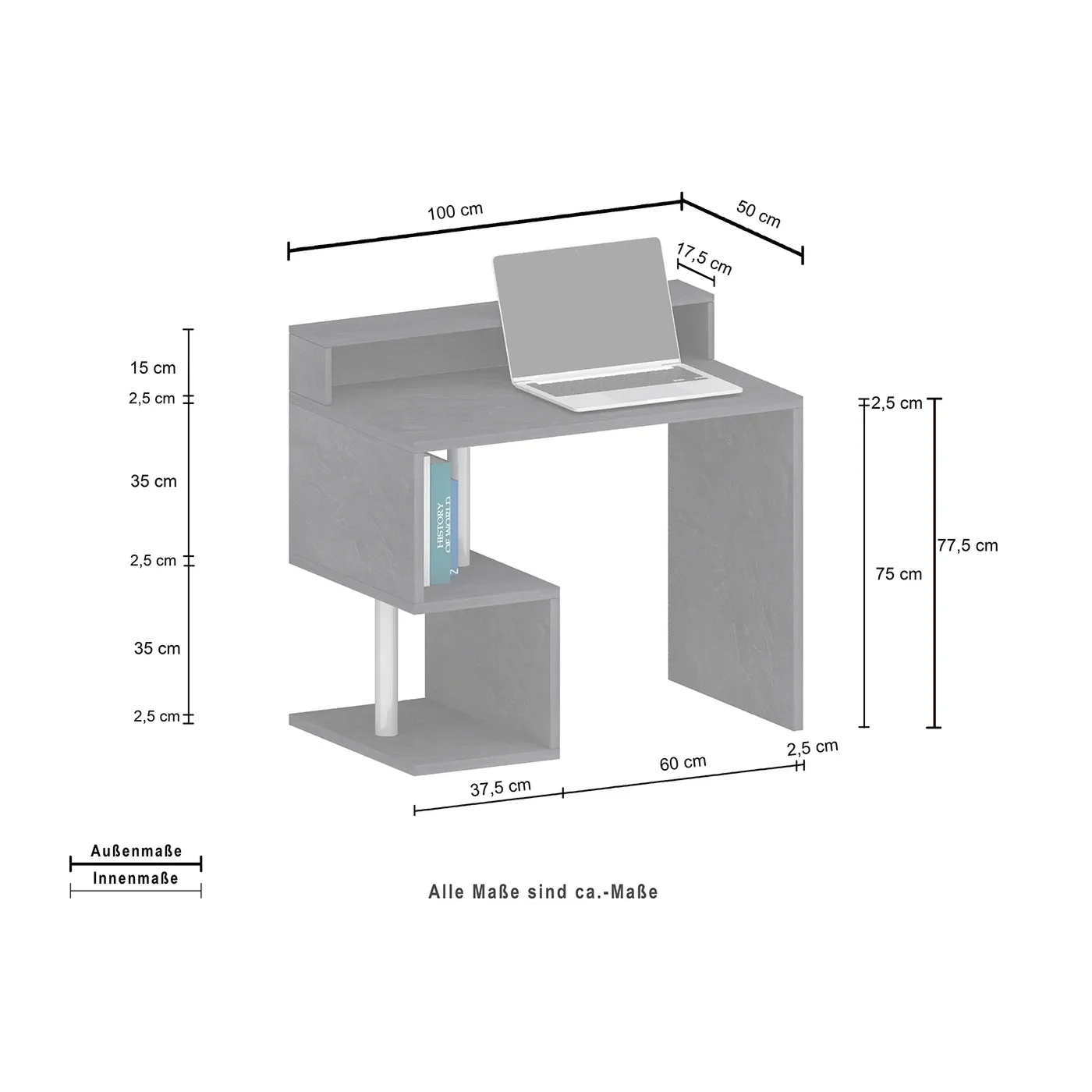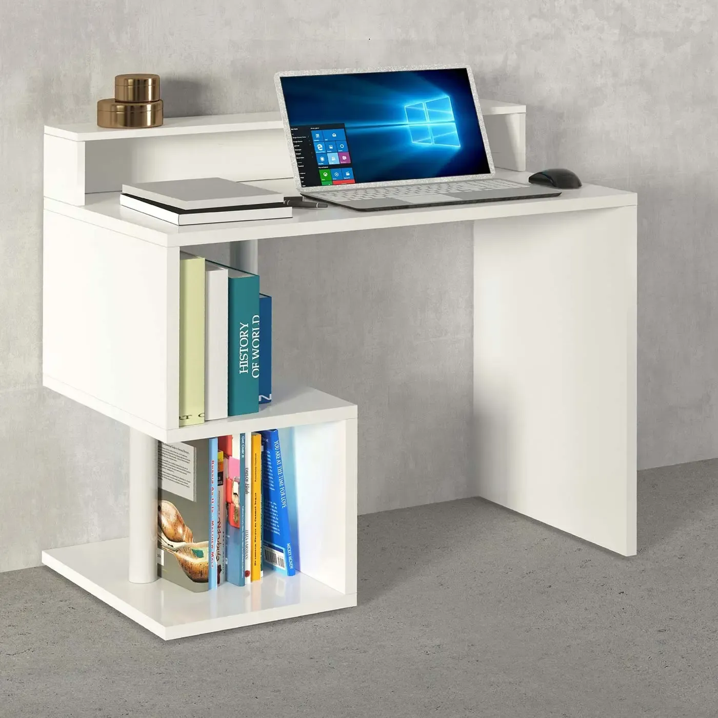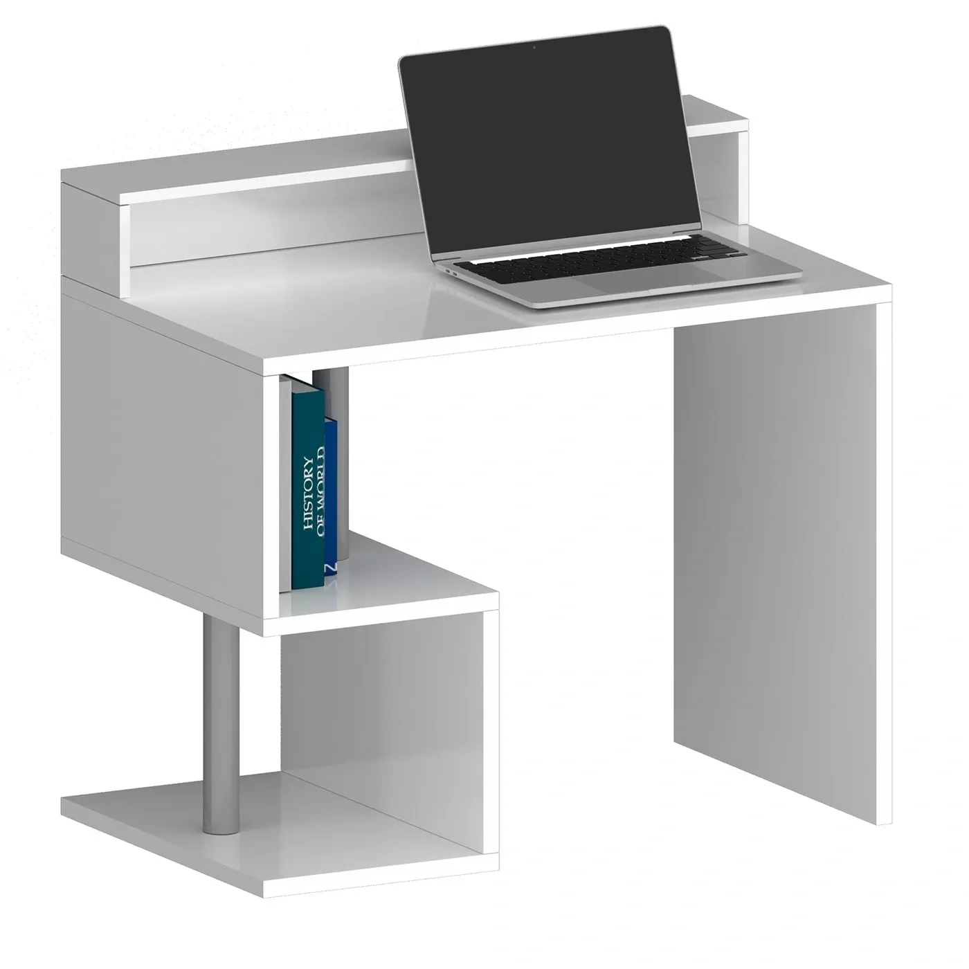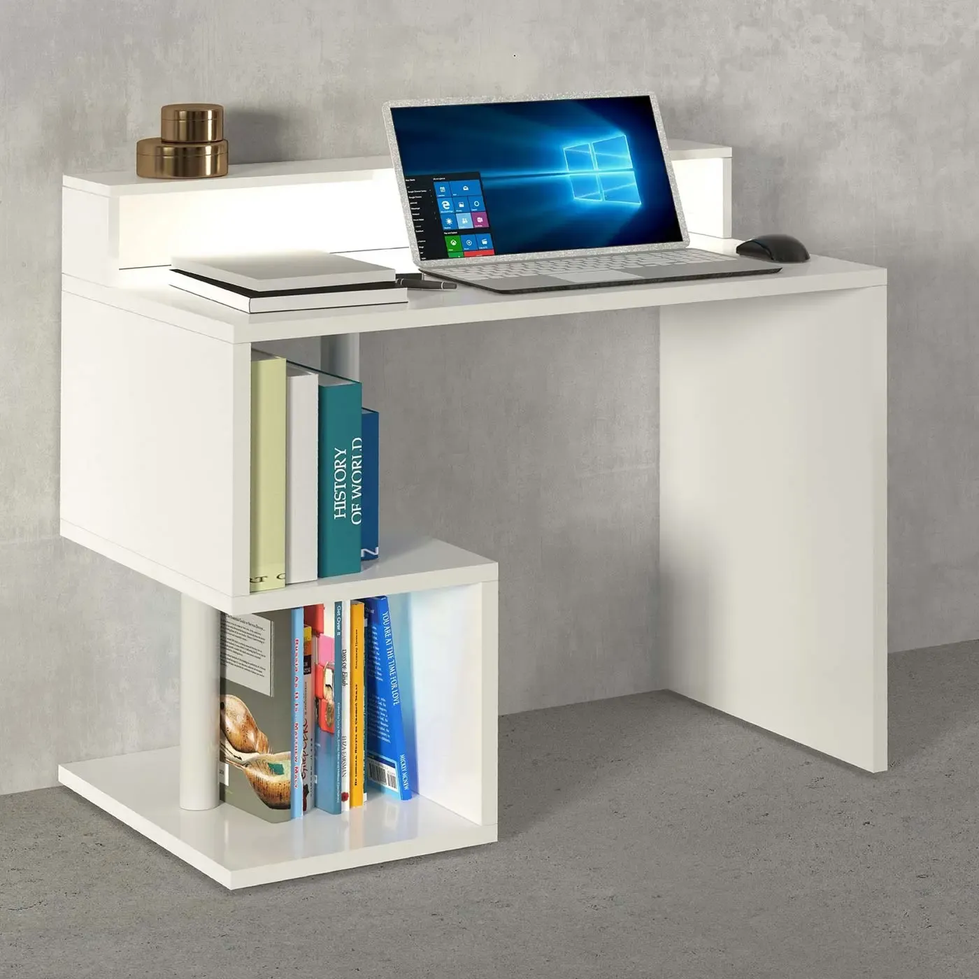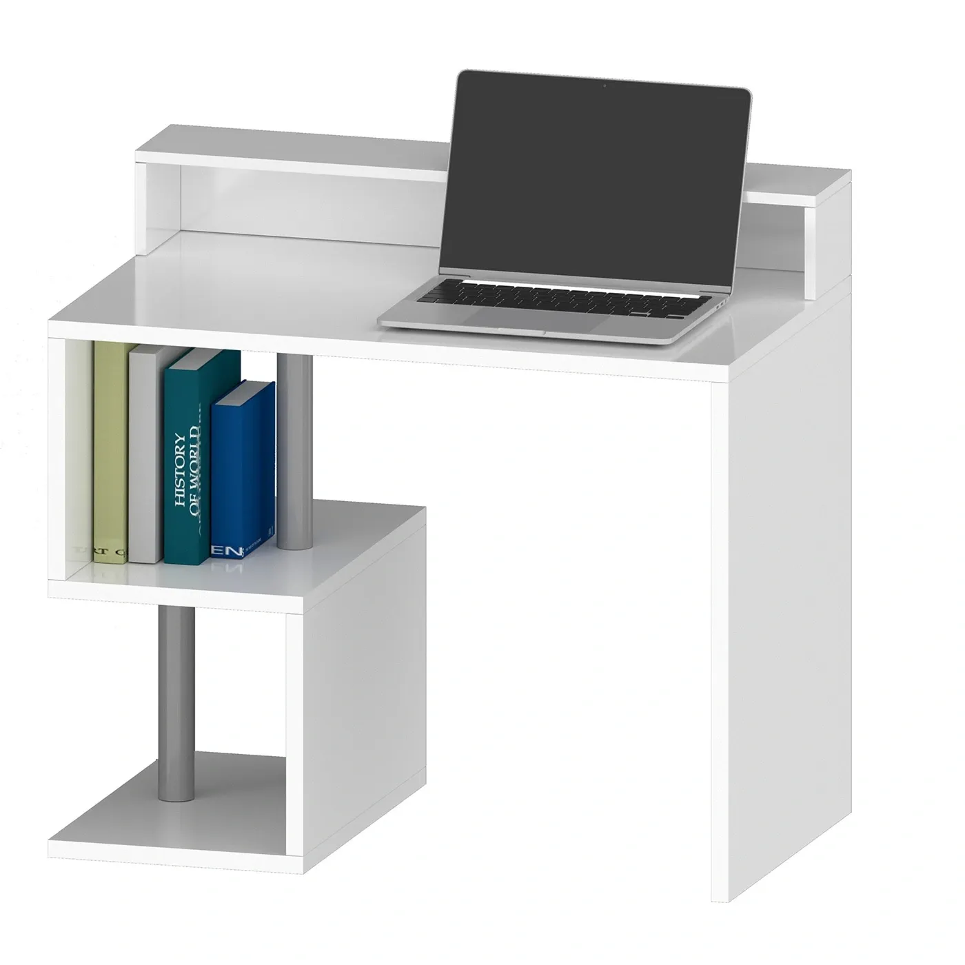 Scrivania con scaffali, 100x90x50 h cm, Bianco laccato lucido