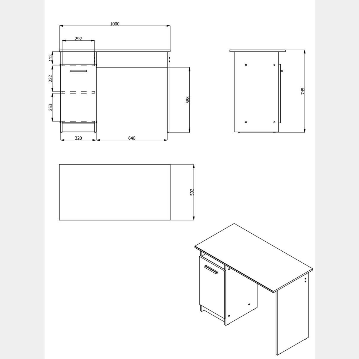 • Misure scrivania: L.100 H.74,5 P.50,2 cm