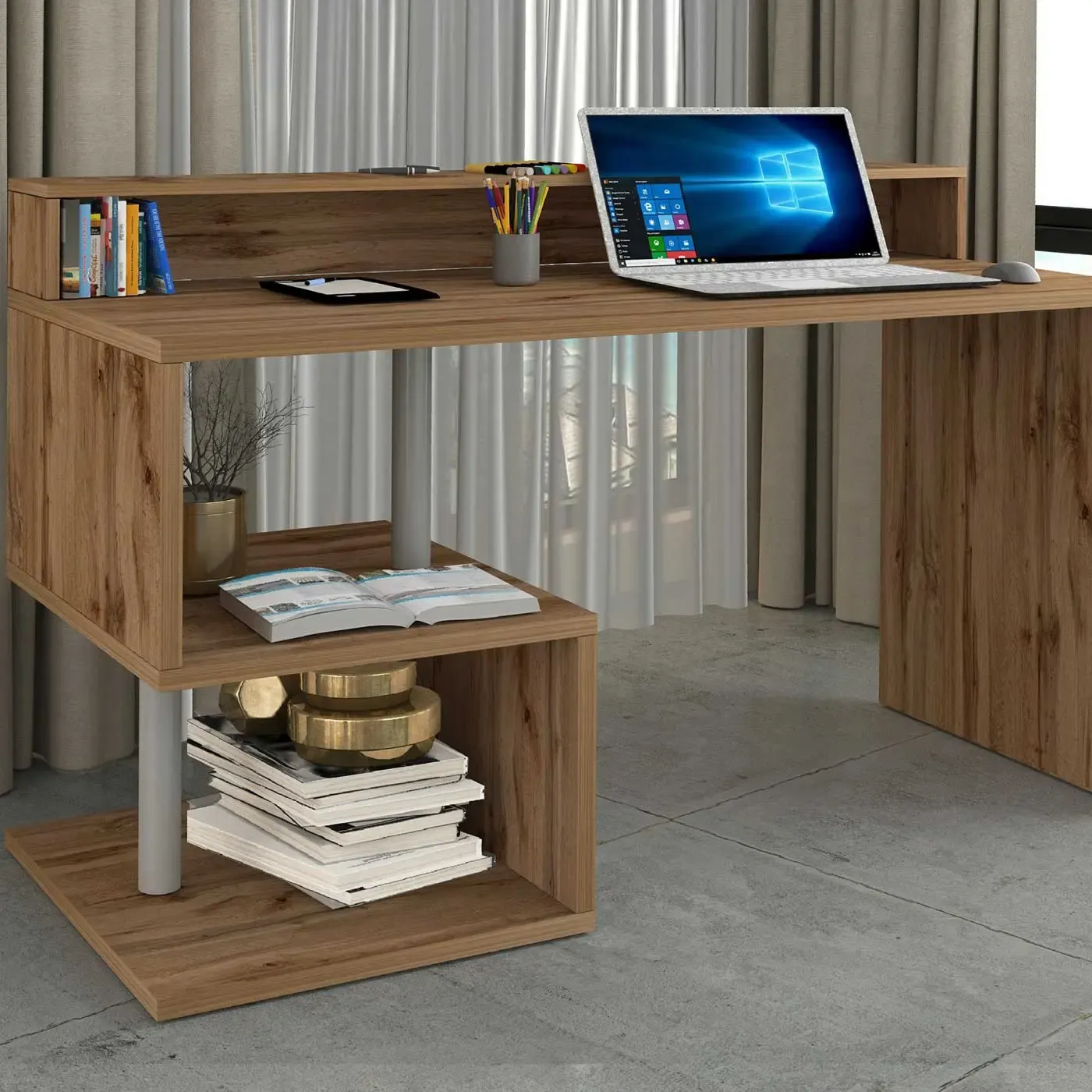 Realizzata con materiali in legno nobilitato e 100% Made in Italy, la scrivania garantisce qualità e durata nel tempo. Il suo design moderno e originale, si integra inoltre con qualsiasi arredamento, aggiungendo un tocco di stile al tuo spazio domestico grazie alla seducente colorazione in Rovere Wotan, e permette poi di ottimizzare il lavoro e il comfort durante le attività quotidiane.