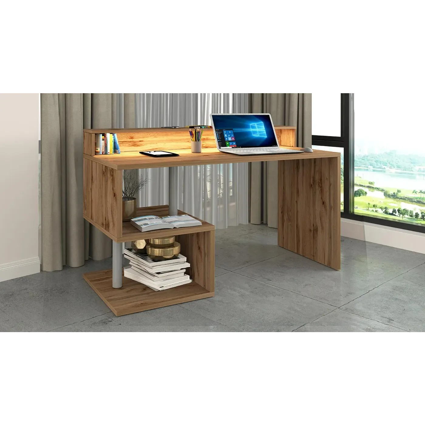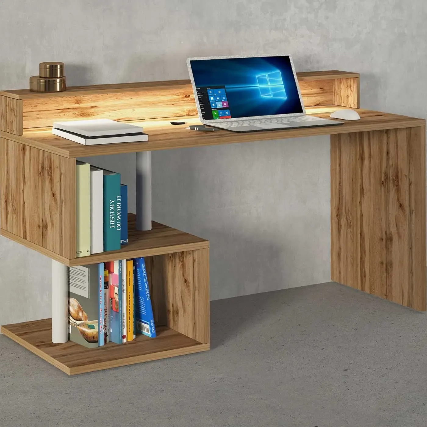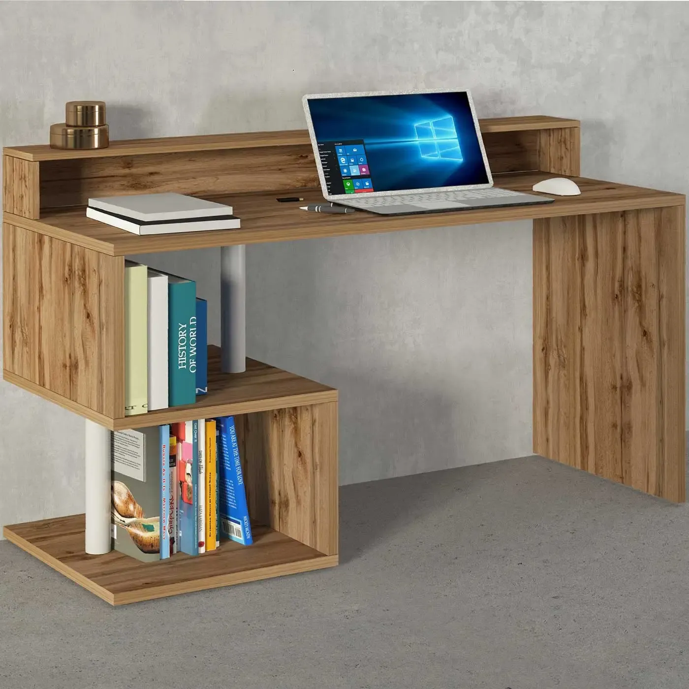 Scrivania con vani portaoggetti, 140x90x60 h cm, Rovere Wotan