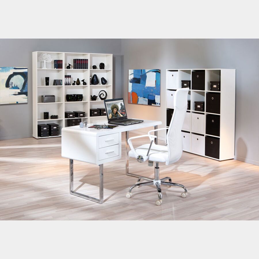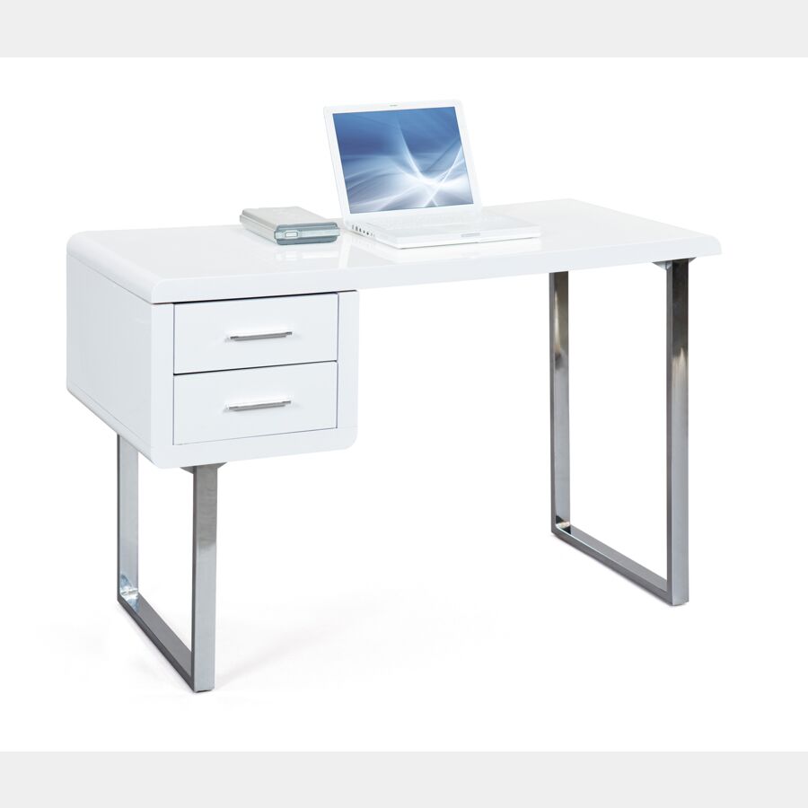 Scrivania da ufficio bianco lucido, con 2 cassetti, funzionale e spaziosa dotata di eleganti gambe in metallo.