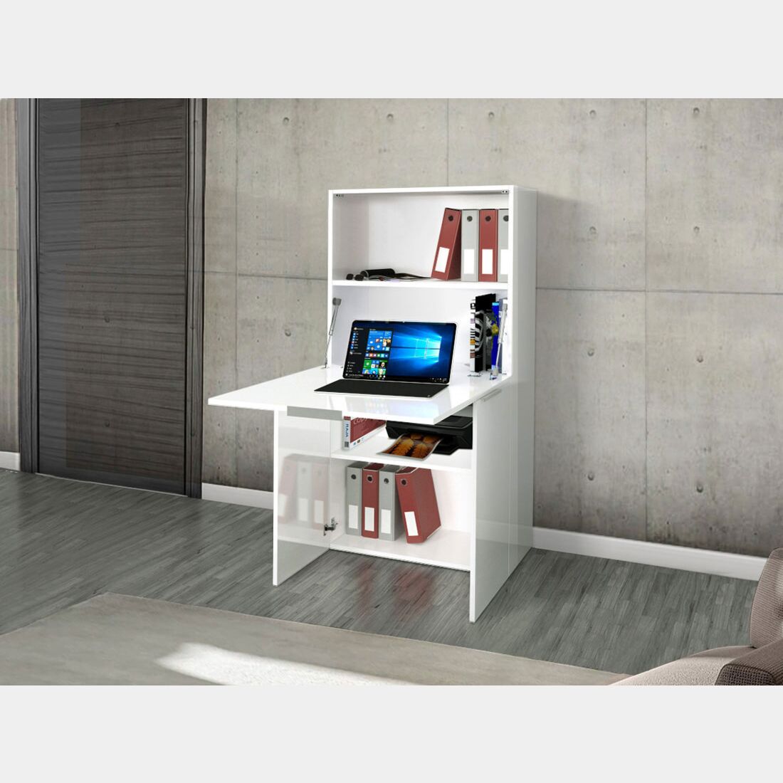 Scrivania estraibile, multiuso, bianco lucido, made in Italy