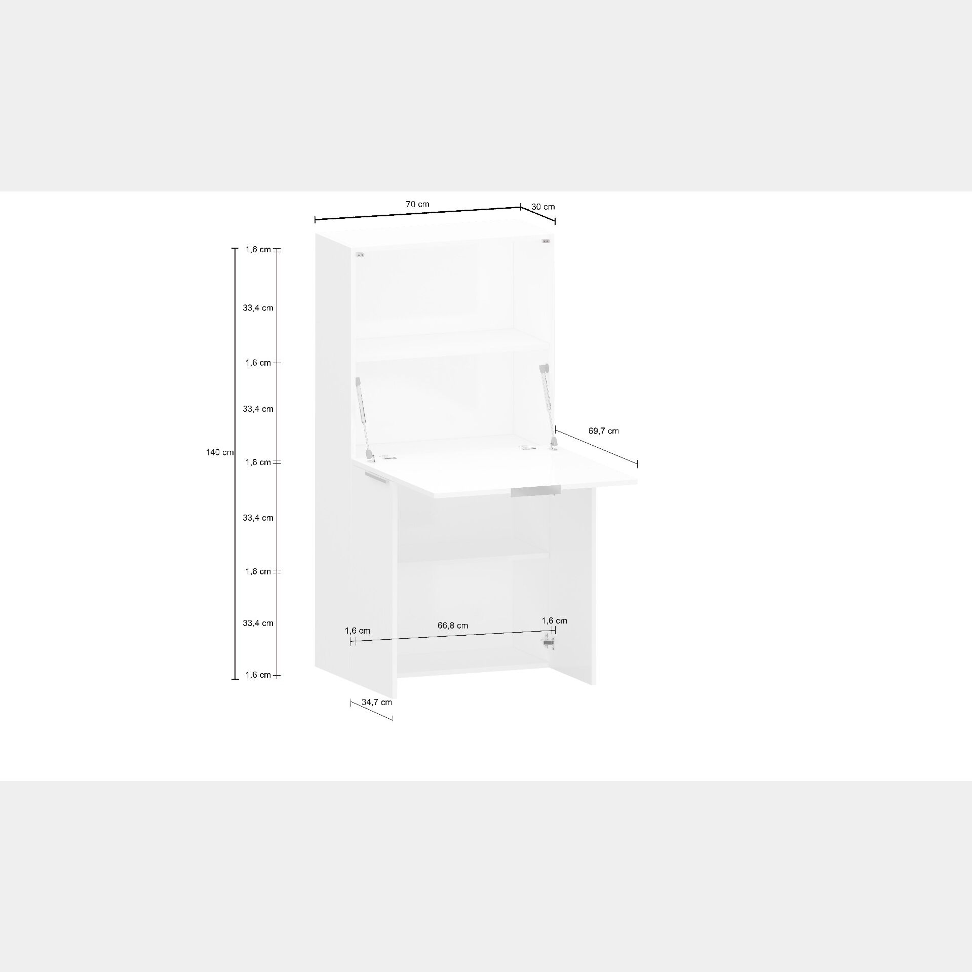 Misure: L.70 P.35 H.140