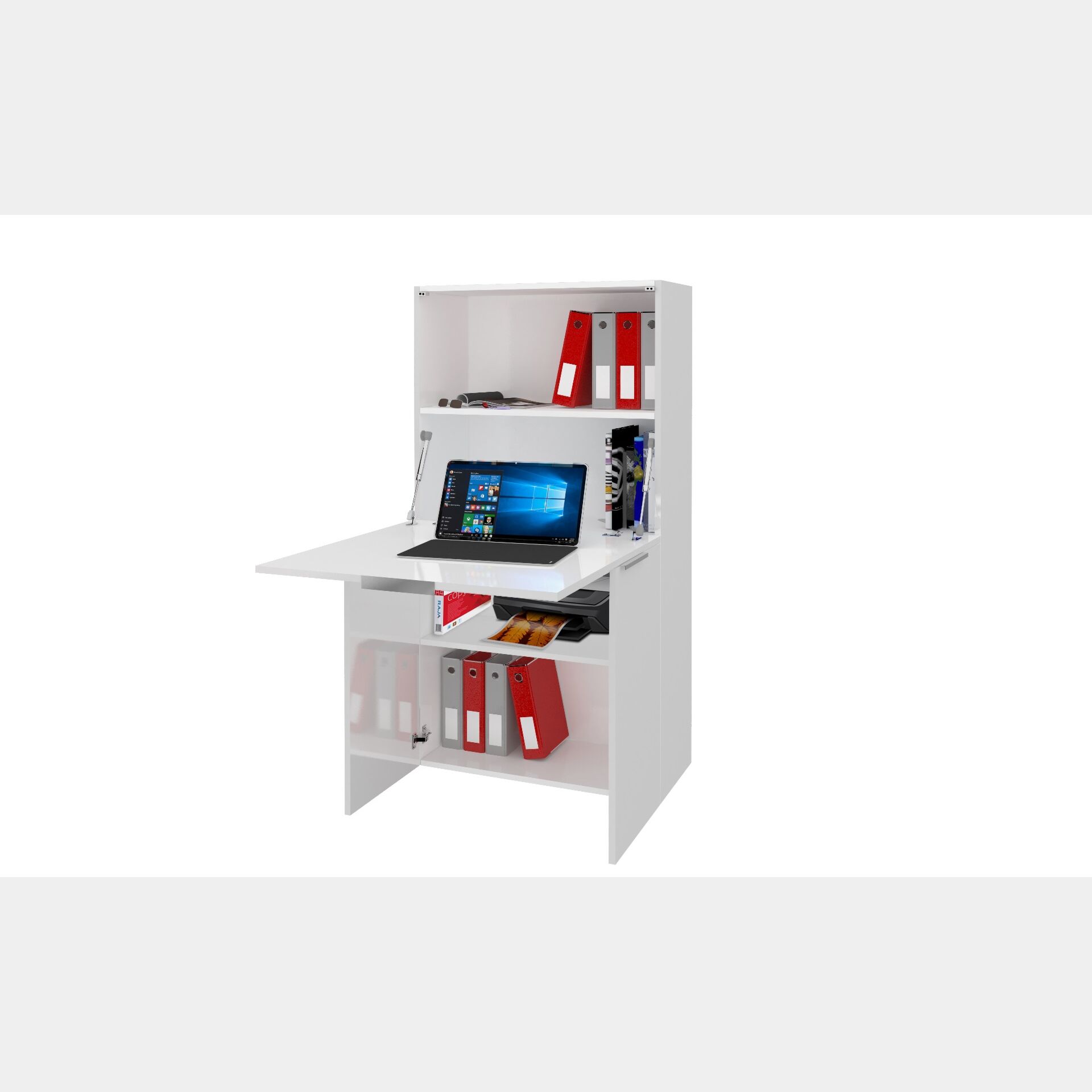 Pratica scrivania multifunzionale, estraibile, bianco lucido, made in Italy