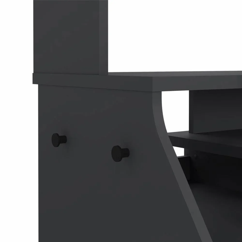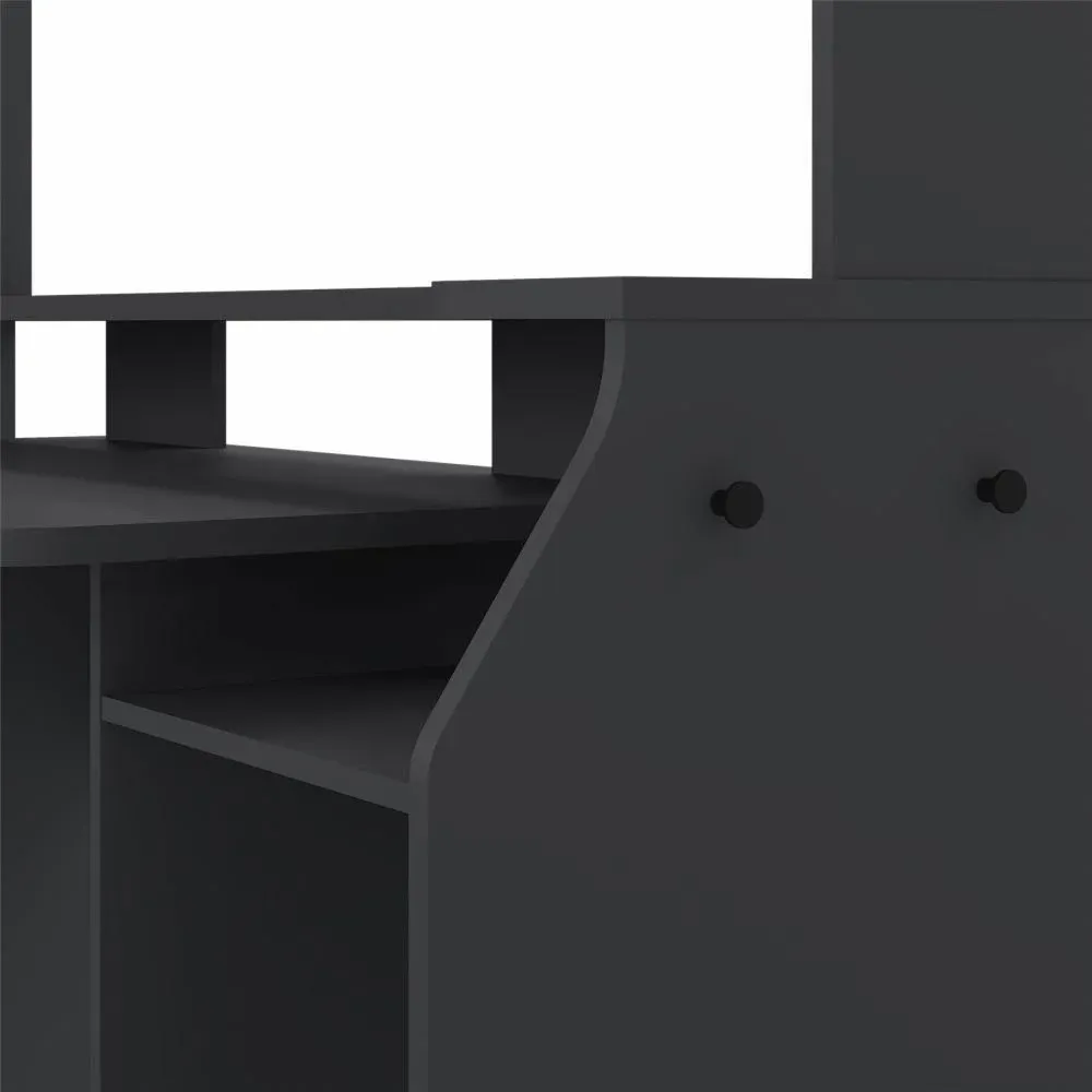 La scrivania è composta da un cassetto in cui si possono inserire i propri oggetti. E' costituita da uno scomparto chiuso con ripiano regolabile, è composta da quattro scomparti aperti di diverse dimensioni ideali per inserire schermi di computer o dispositivi elettronici. E' formata da due monopole su cui si possono appoggiare o vestiti o altri oggetti. La struttura della scrivania consente di vivere un'ottima esperienza di gioco in un ambiente ben organizzato e ordinato.