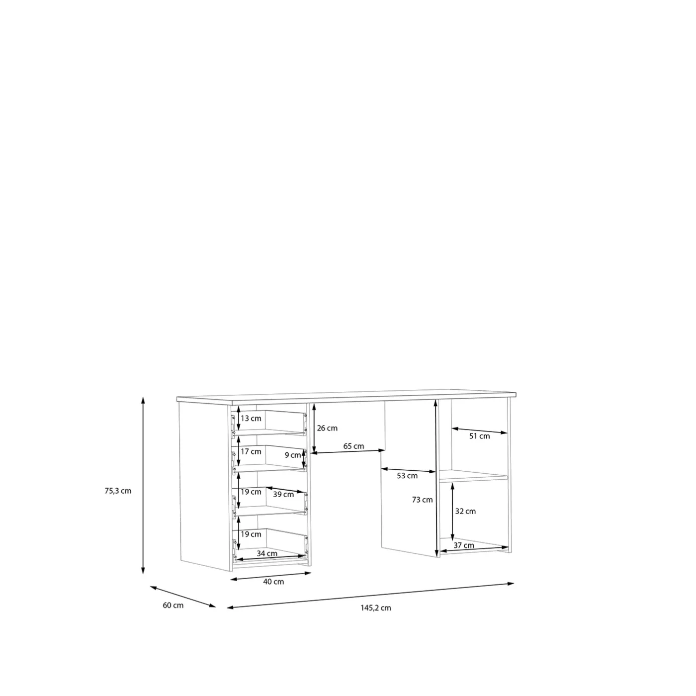 Scrivania industry con cassetti, 145x75x60 h cm, Rovere Artisan