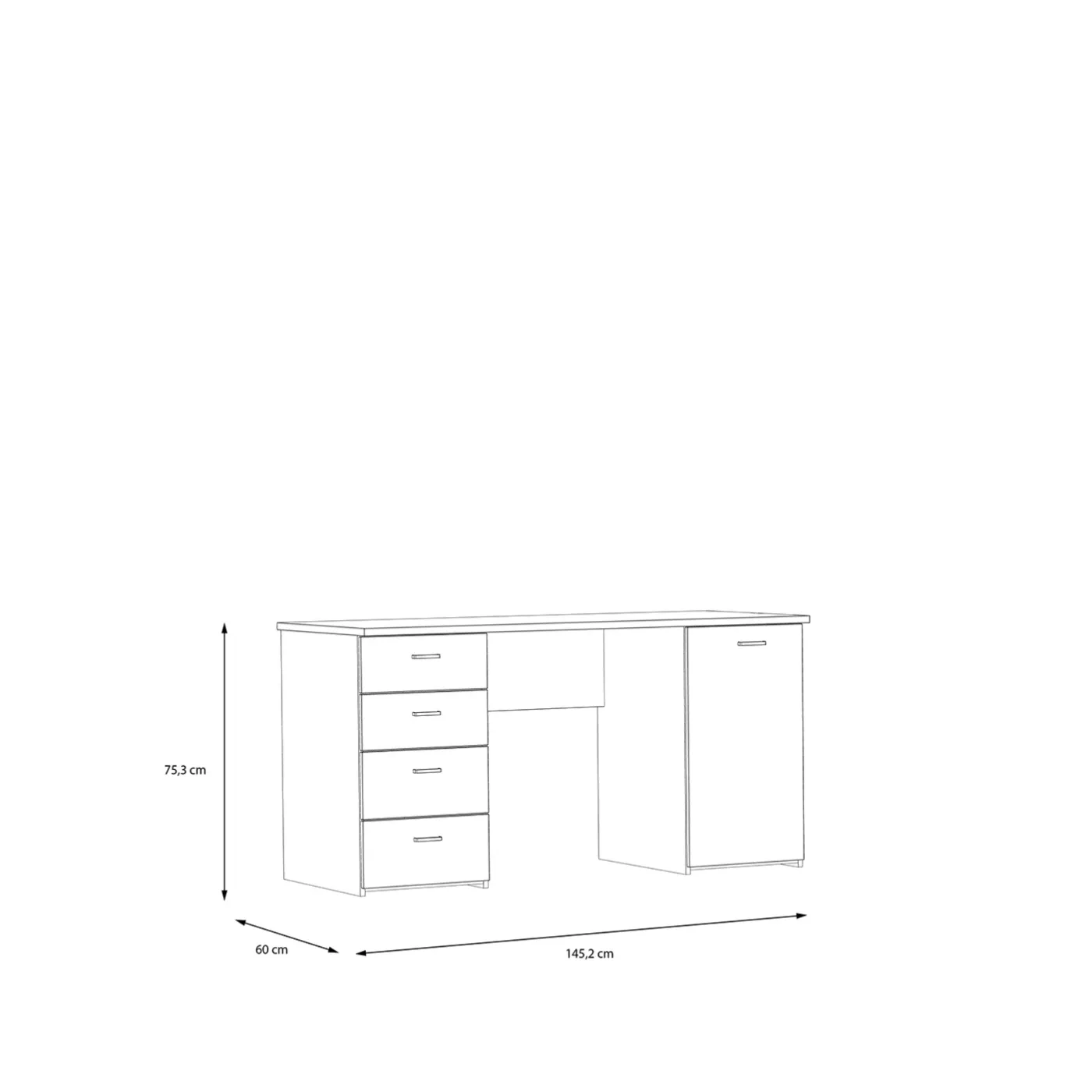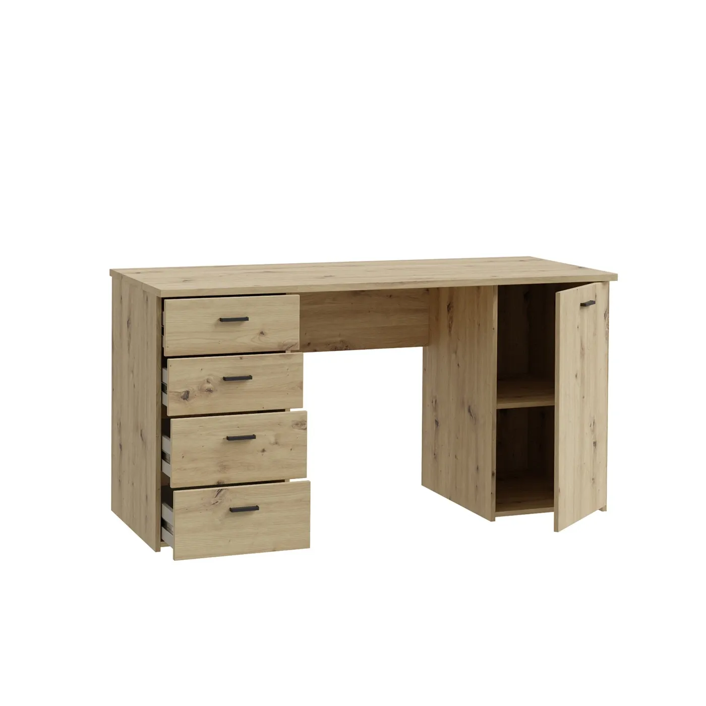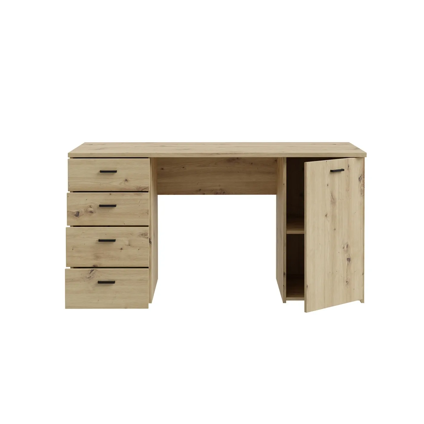 Scrivania in stile industriale, dotata di un'anta e quattro cassetti, in promozione. Perfetta per uffici e camerette.