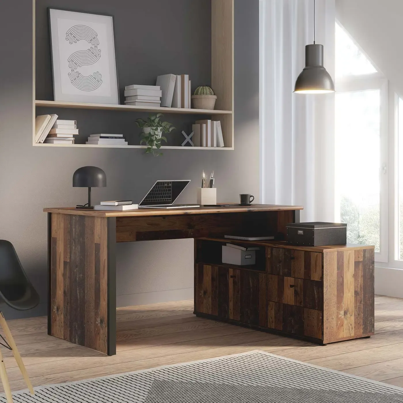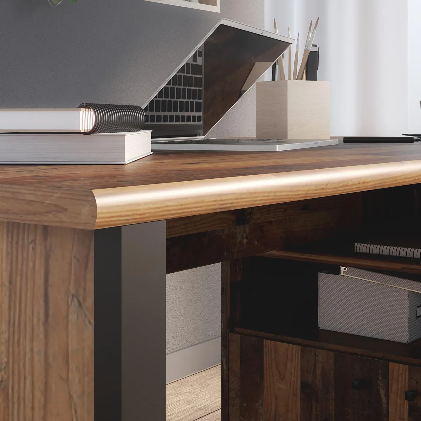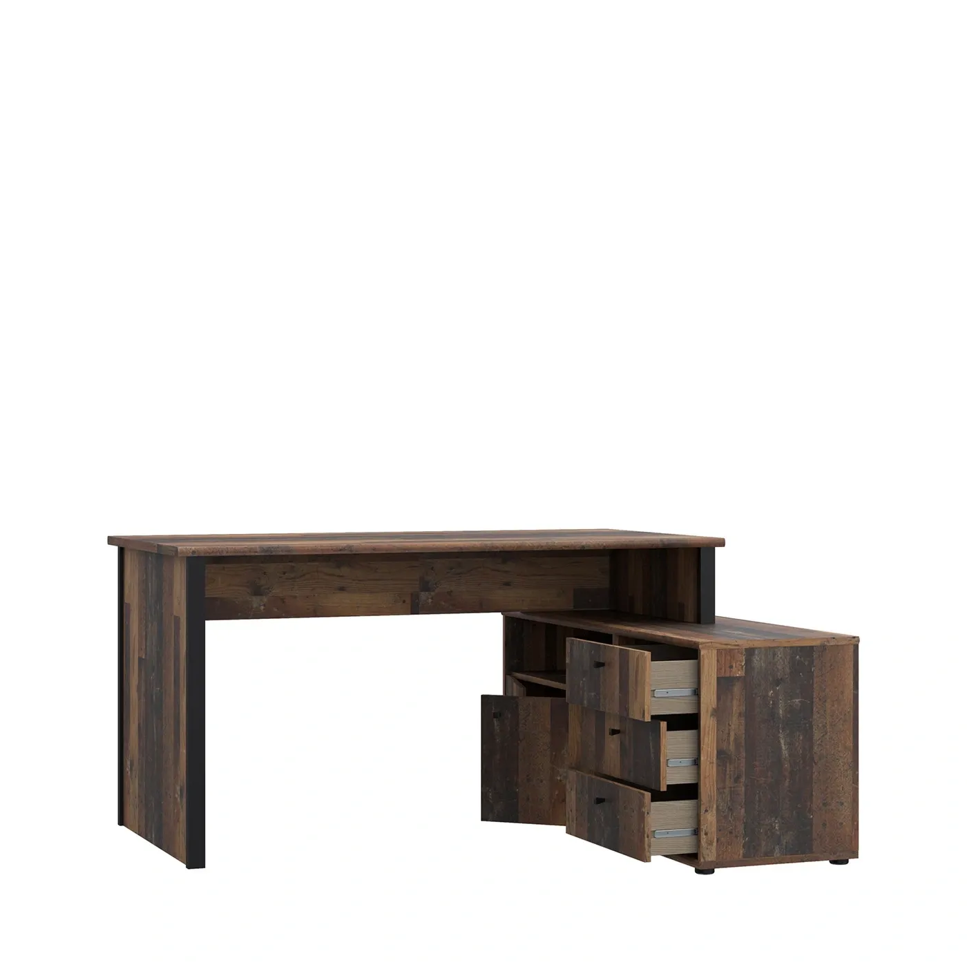 Scrivania moderna 3 cassetti, 121x75x152 h cm, Rovere invecchiato