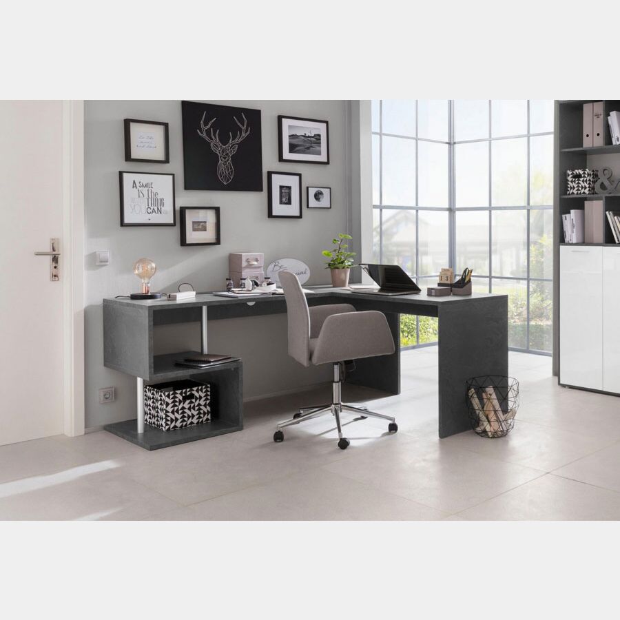 Scrivania moderna ad angolo con gamba "S", finitura ardesia