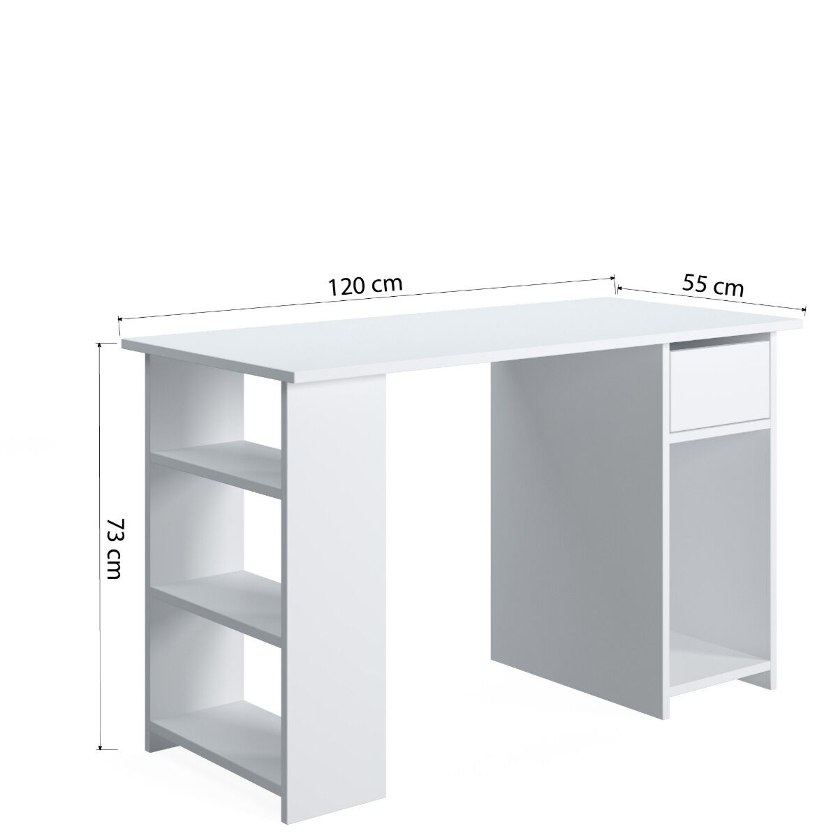 La scrivania Ankara è dotata di un ampio piano di appoggio che risulta comodo durante le ore di studio o di lavoro. Le gambe sono diverse tra loro: in quella di sinistra sono inseriti 2 ripiani per riporre documenti, carte o soprammobili mentre in quella di destra è presente un cassetto superiore e un ripiano.