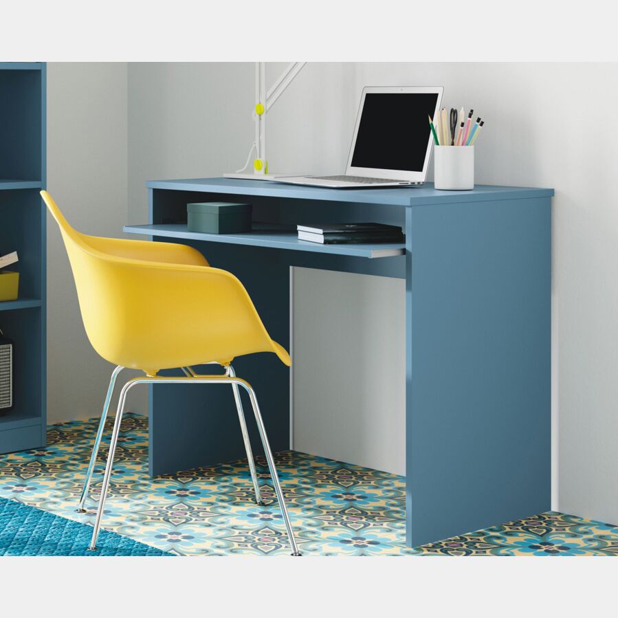 Scrivania moderna azzurra con ripiano estrabile