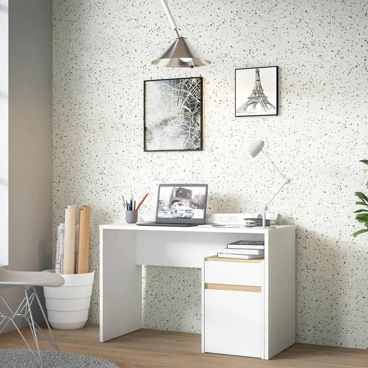 Scrivania moderna, 110x52x72, Bianco e Rovere Artisan