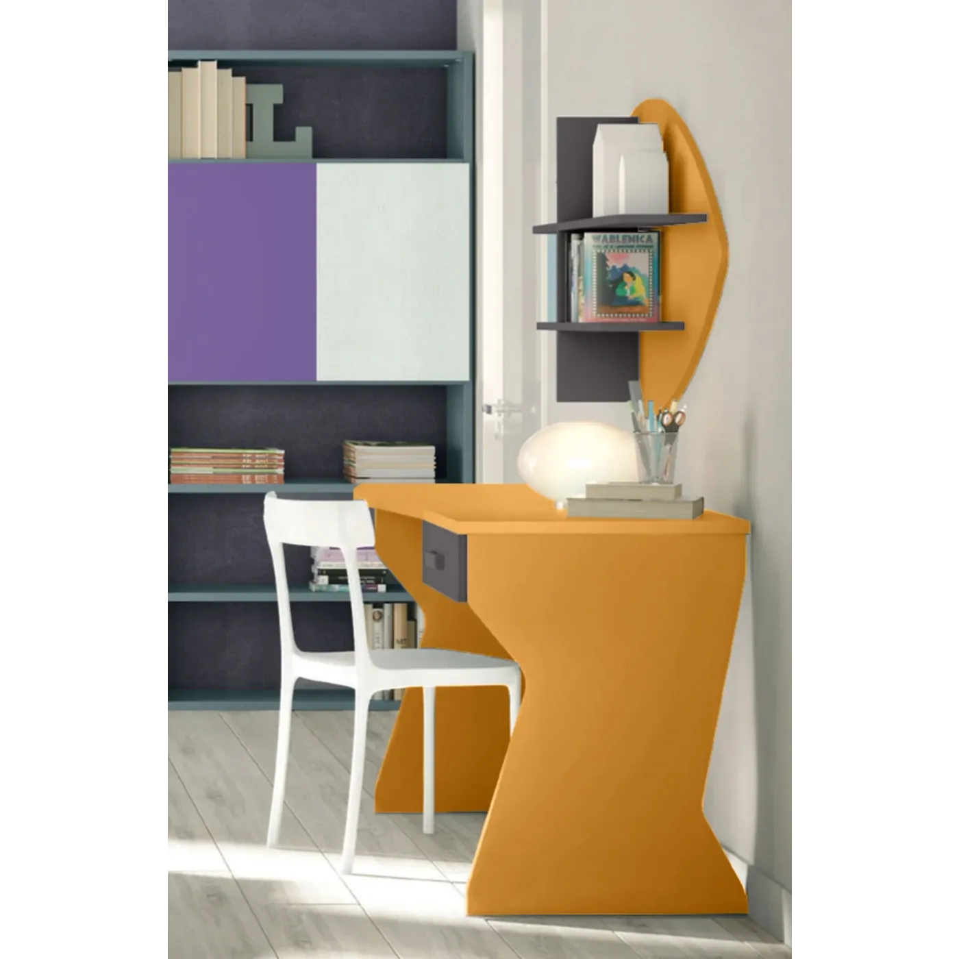 Grazie alle sue finiture dona carattere alla zona studio, è possibile personalizzare i colori per adattarla al meglio al proprio ambiente. Dotata di un ampio piano di appoggio e un cassetto con maniglia risulta spaziosa e comoda.