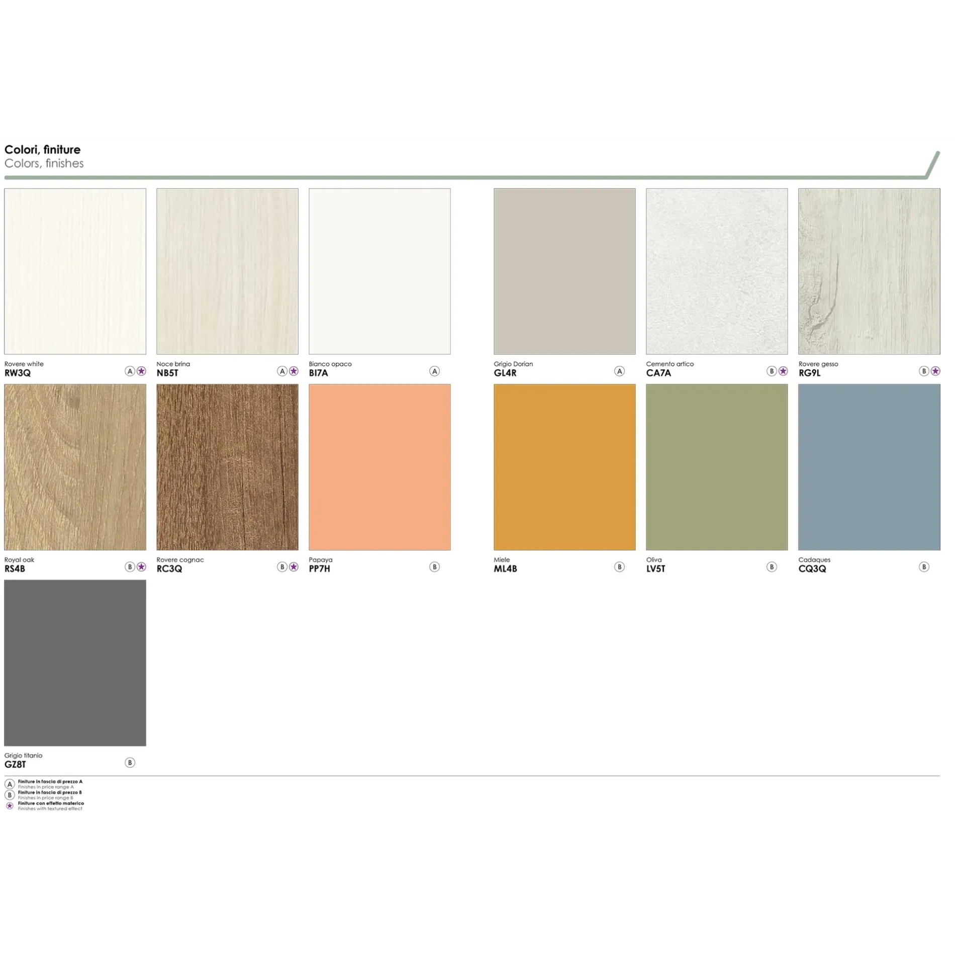 E' possibile variare le finiture scegliendo tra 10 diverse finiture per donare carattere alla camere e renderla personale.