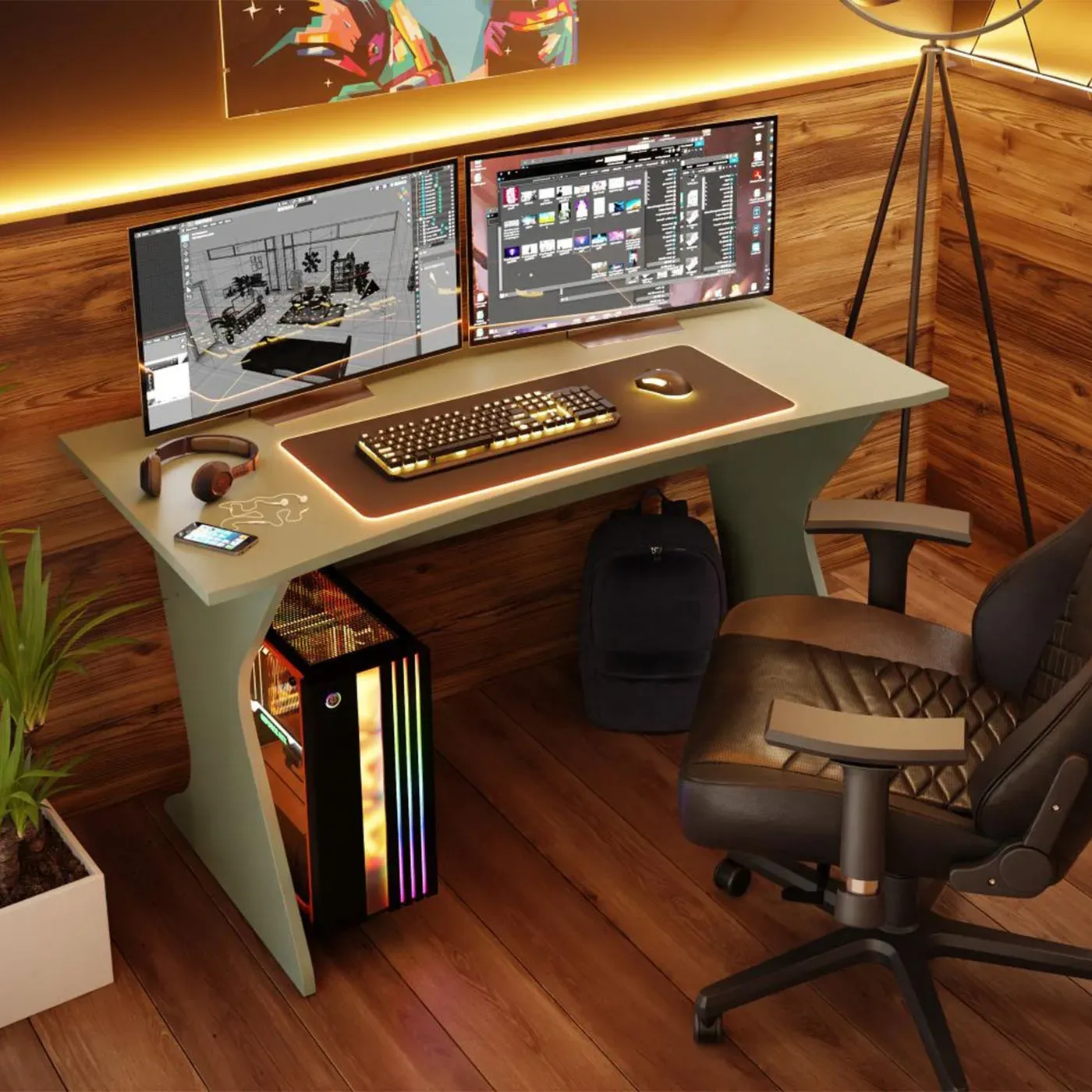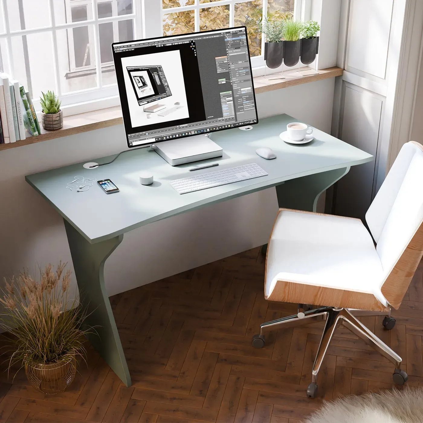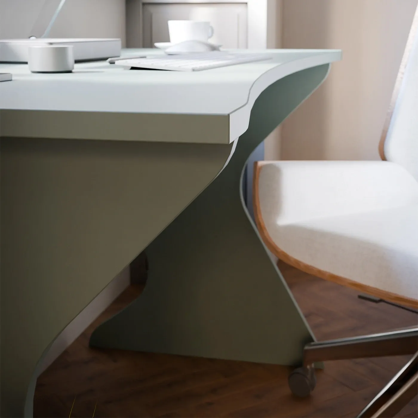 La sagomatura di piano e fianchi dona alla scrivania un aspetto dinamico e moderno, che viene valorizzato dalla tinta Verde salvia, colore fresco e rilassante che crea un'atmosfera tranquilla nel tuo spazio di lavoro.