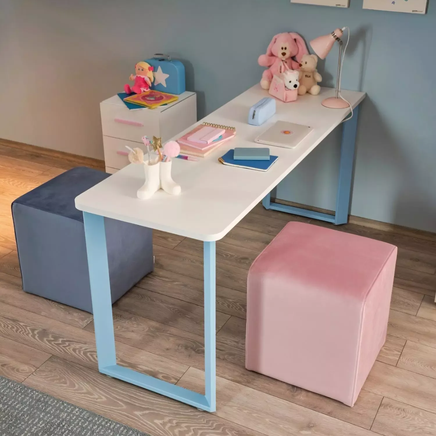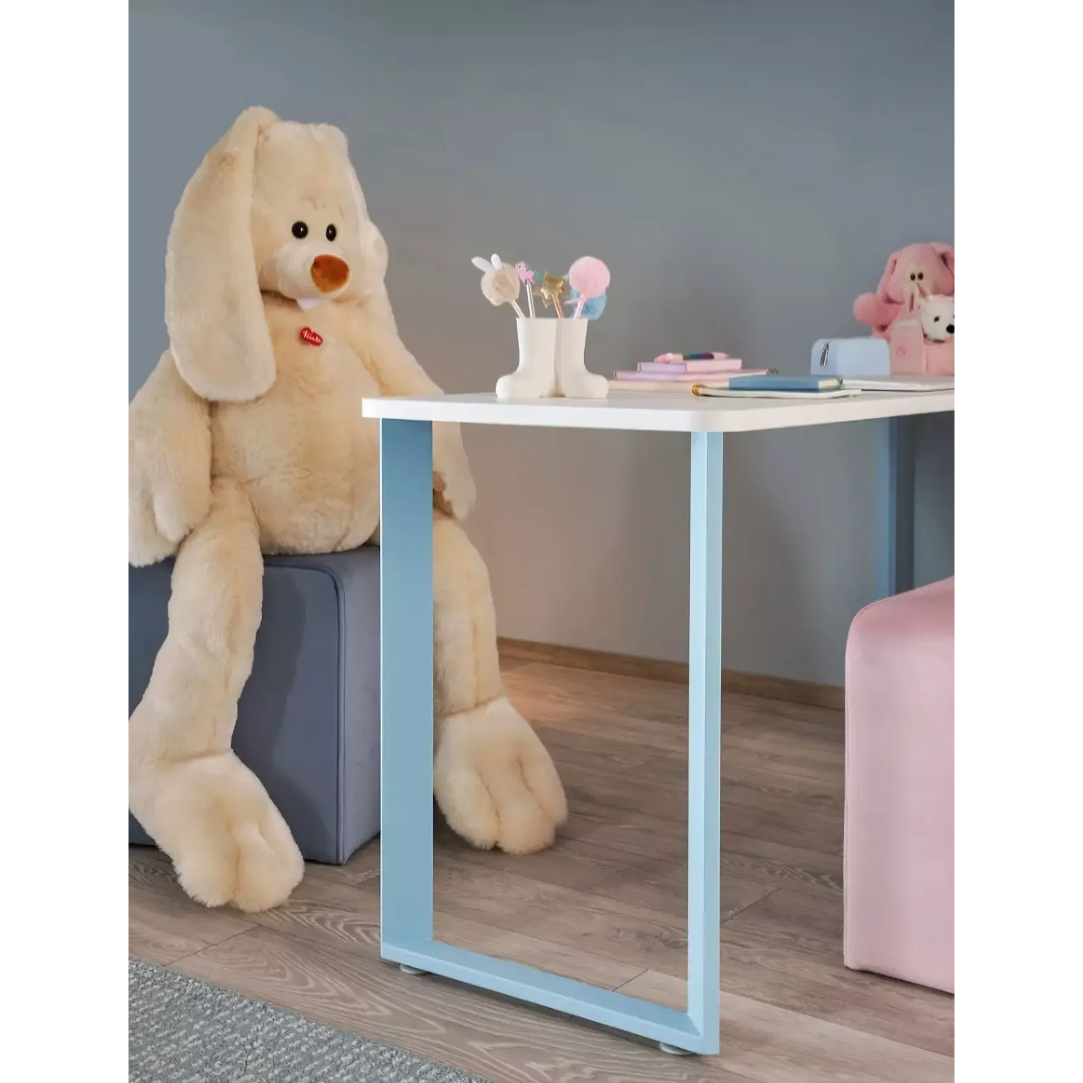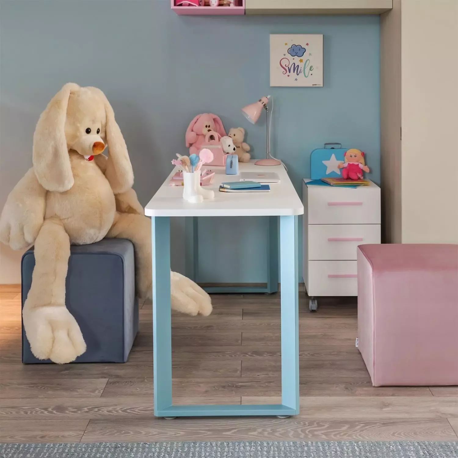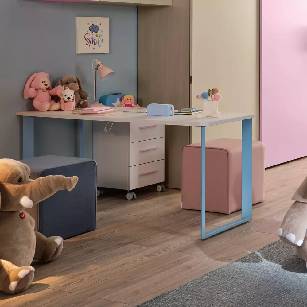 Scrivania per ragazzi Moretti Compact, Bianco luce con gambe Cielo