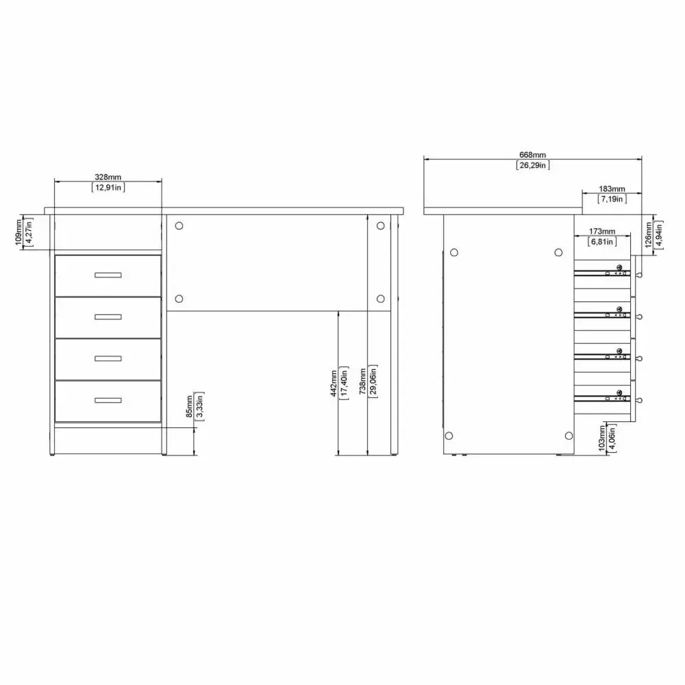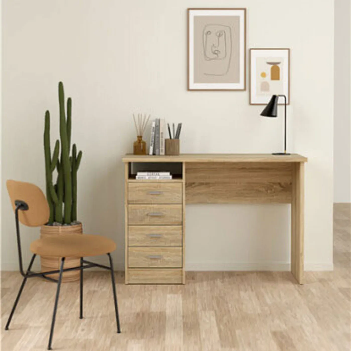 La scrivania è composta da quattro cassetti e uno scomparto vuoto. Grazie alla stuttura della scrivania si può lavorare in un ambiente ben organizzato e ordinato. La scrivania è disponibile anche in nella versione Bianca.