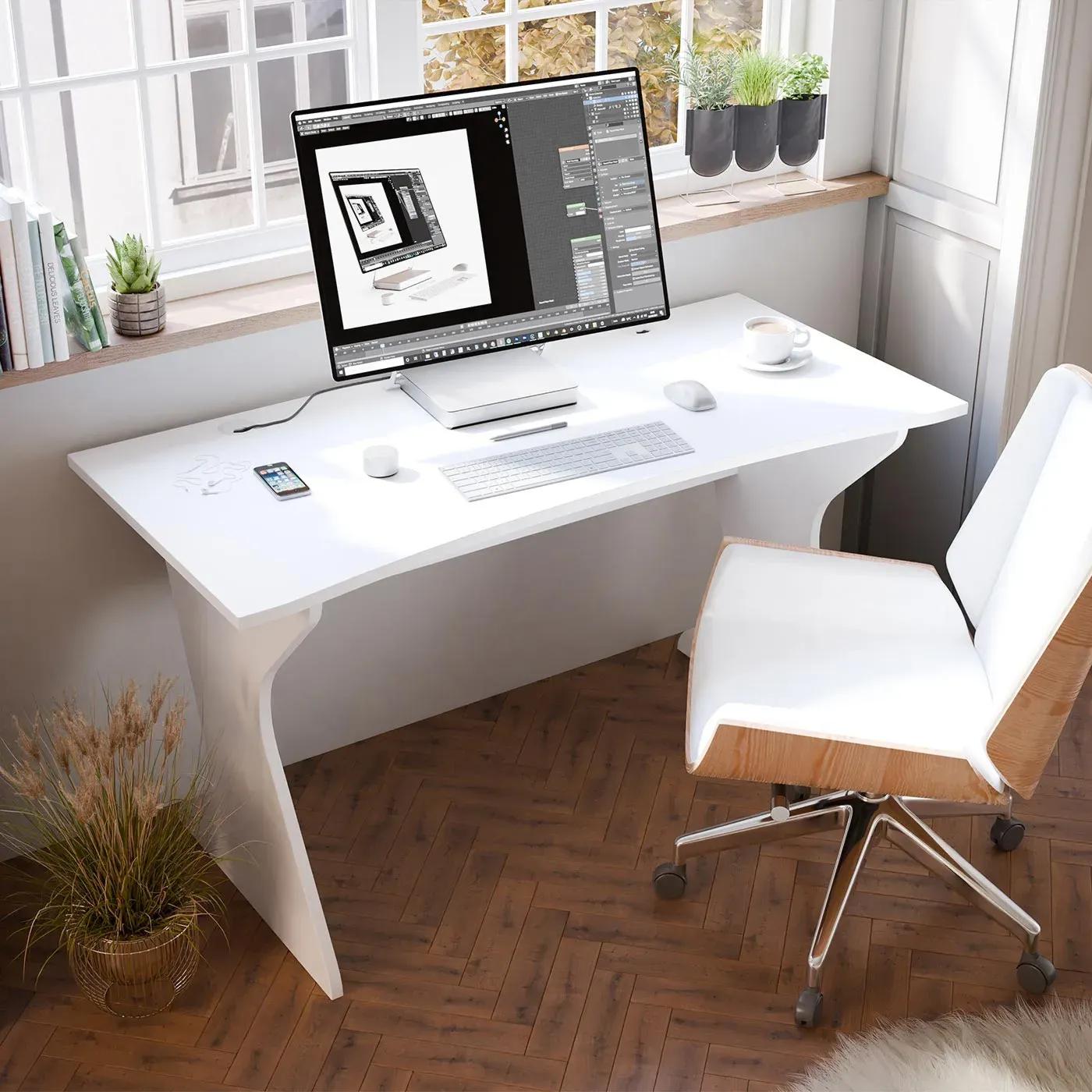 Scrivania sagomata moderna, finitura Bianco, 140x77x65