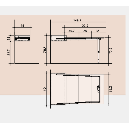 ◾ Scrivania: L.90 H.18.5 P.45-148.7