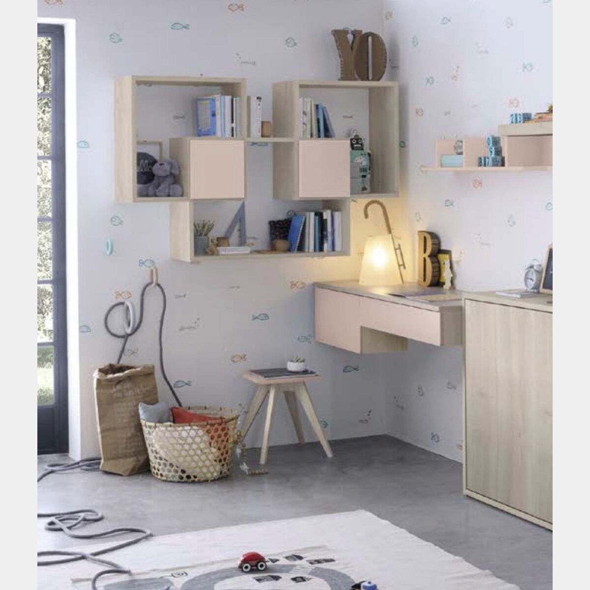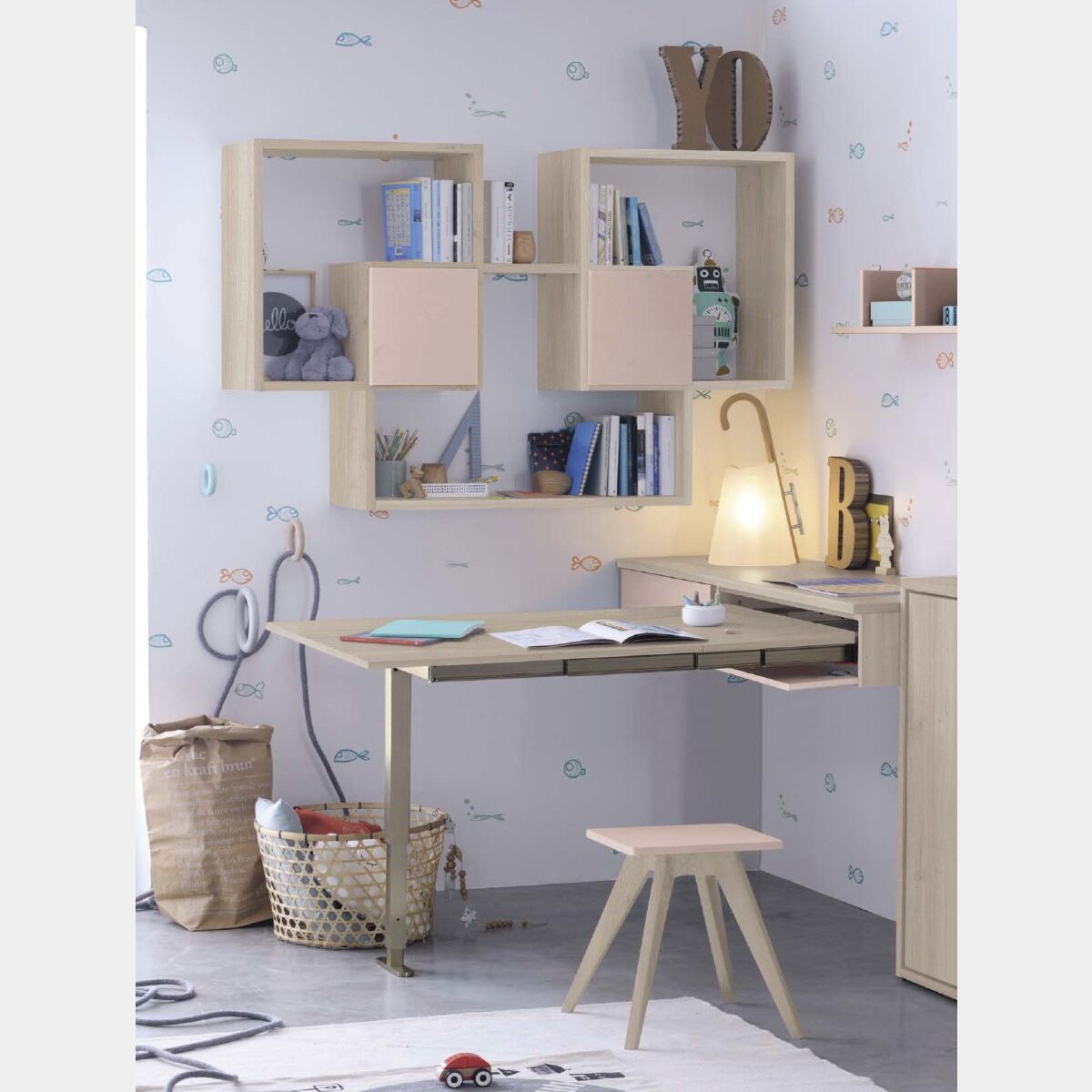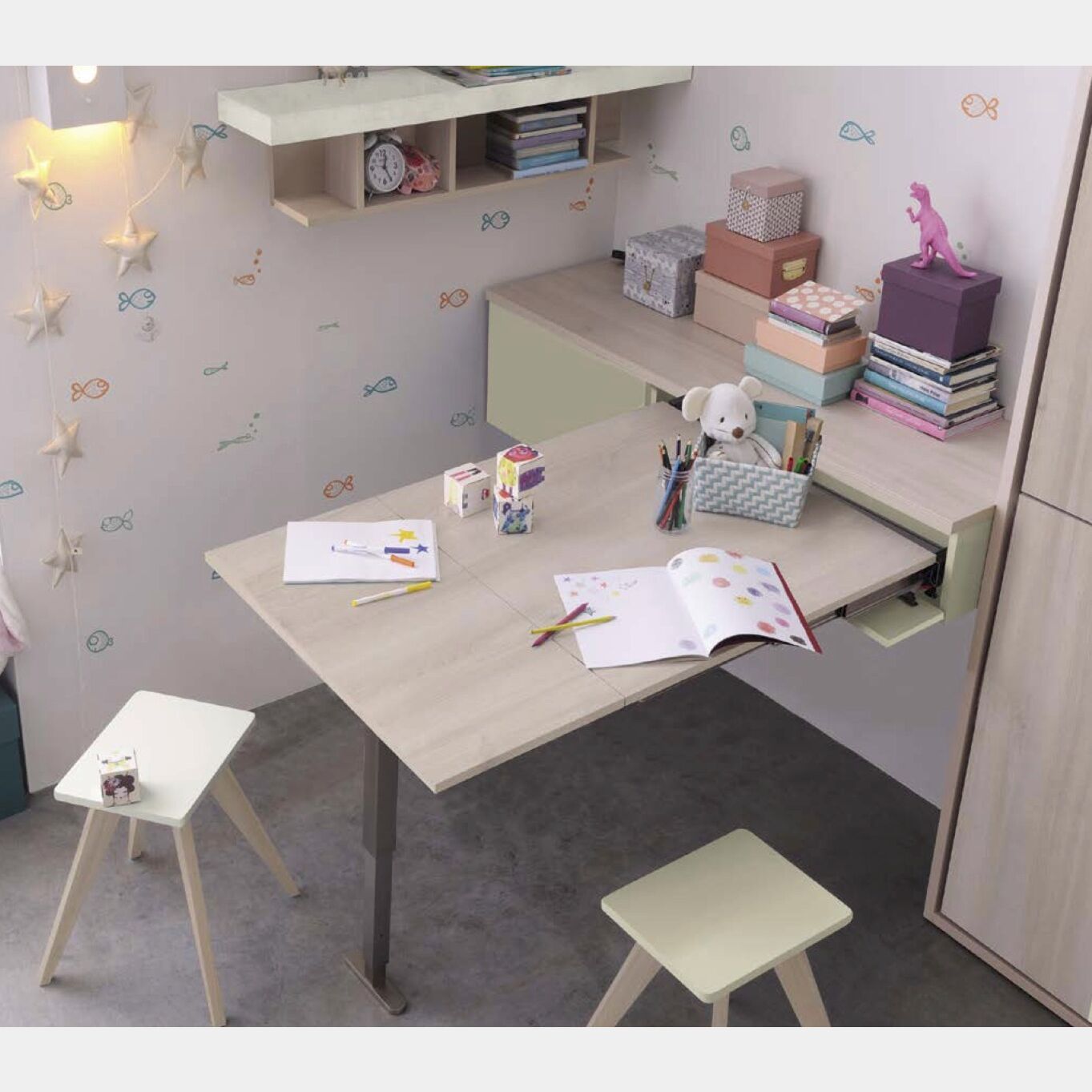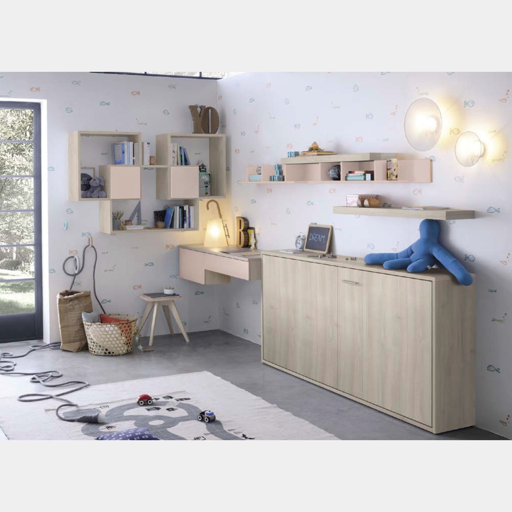 La scrivania estraibile diventa elemento indispensabile nella cameretta del ragazzo per studiare in piena comodità: in soli 90 cm viene custodito un piano di appoggio che estratto arriva a 105.5 cm utili. La profondità rimane generosa, risulta infatti 83.2 cm.