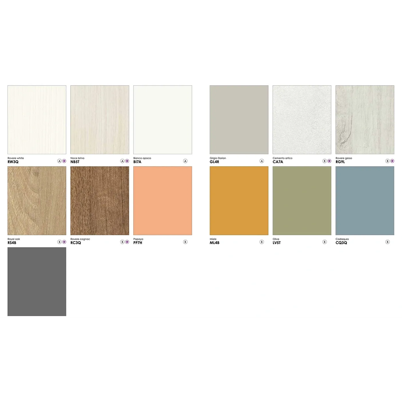 Il mobile è disponibile in differenti colori anche se qui si presenta nelle finiture Cemento artico e Grigio dorian.