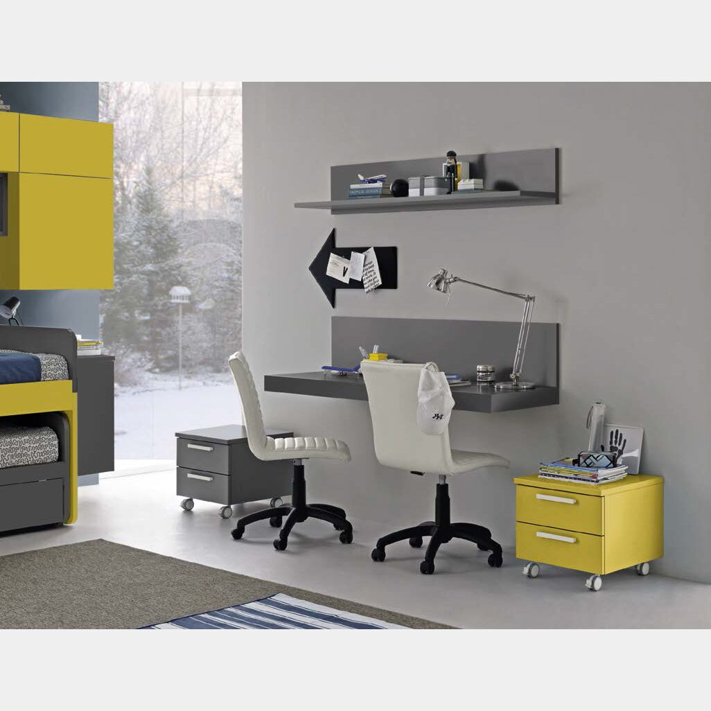 La scrivania è proposta nella finitura Grigio titanio, così come la mensola. Le finiture sono però personalizzabili attraverso il menù a tendina.