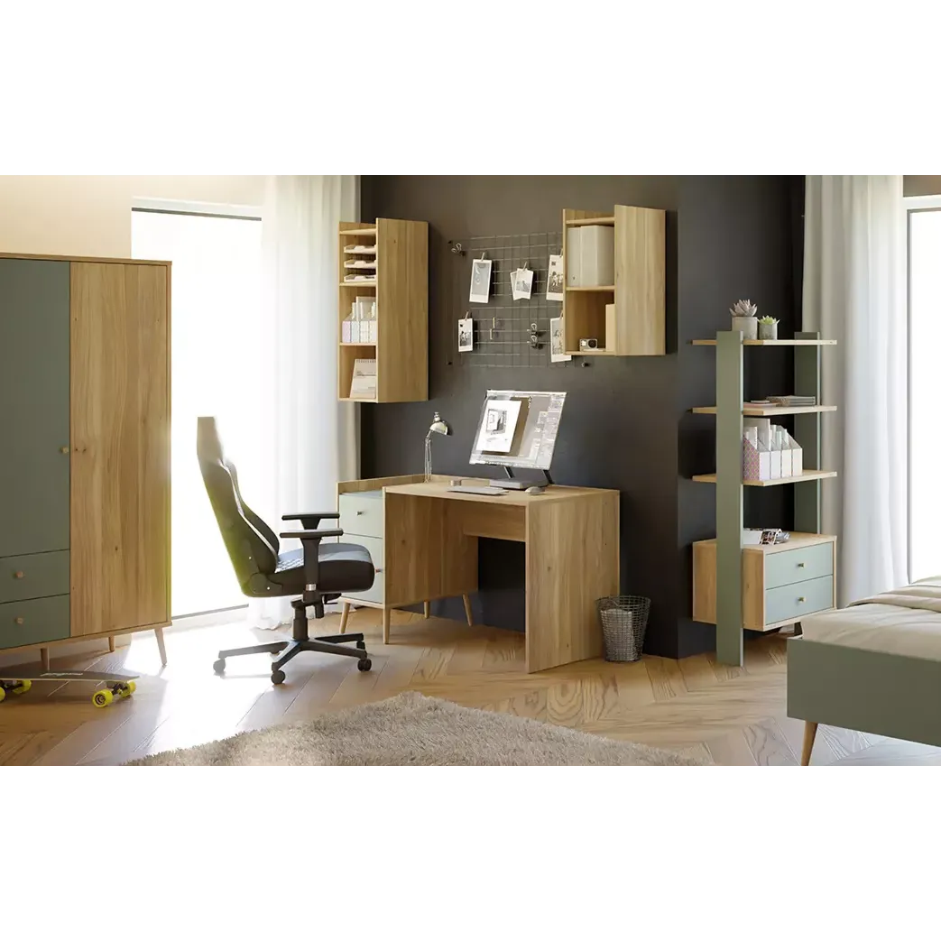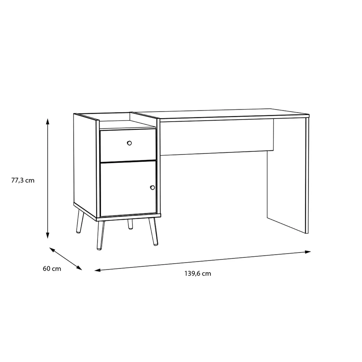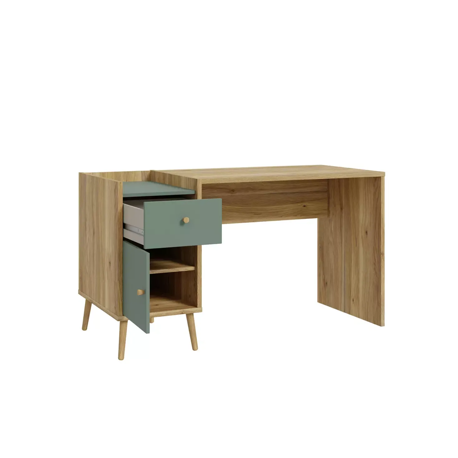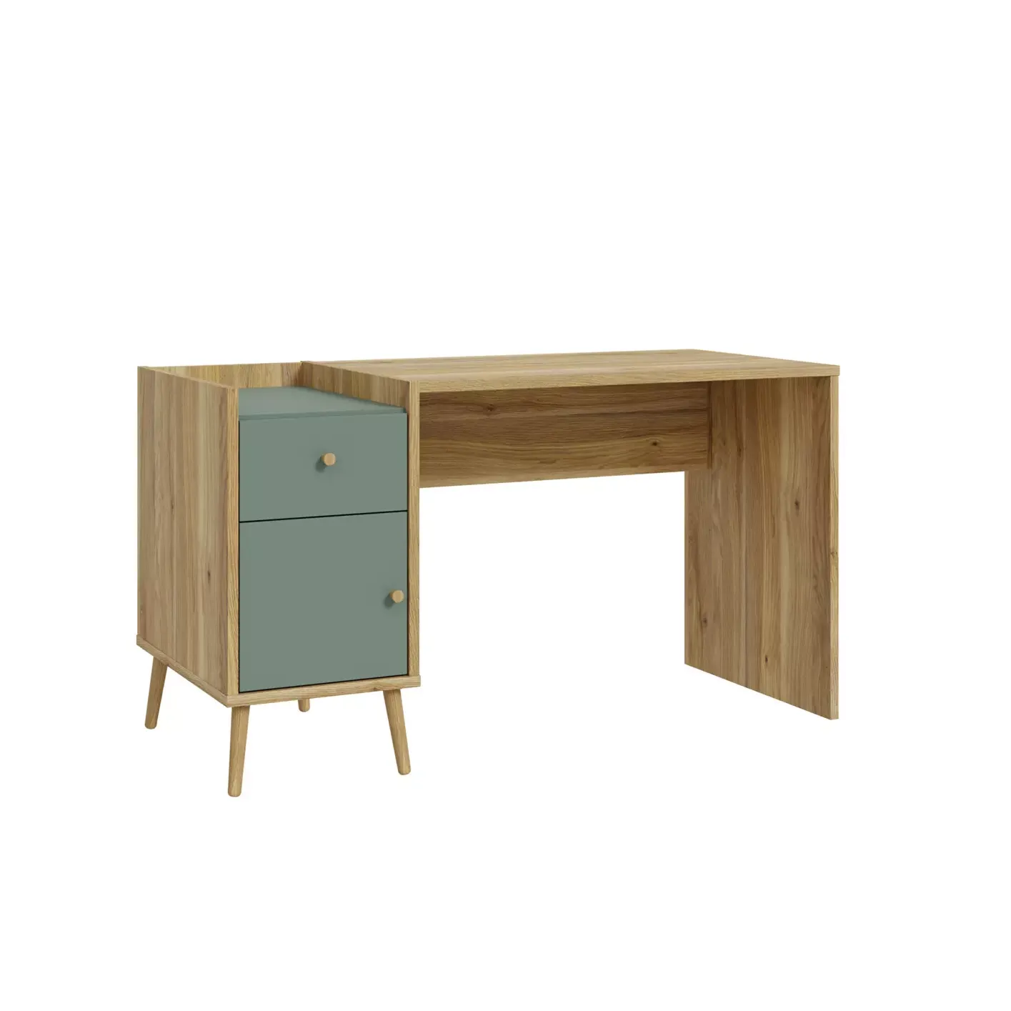 Scrivania stile nordico con anta e cassetto, finitura Agave e Rovere