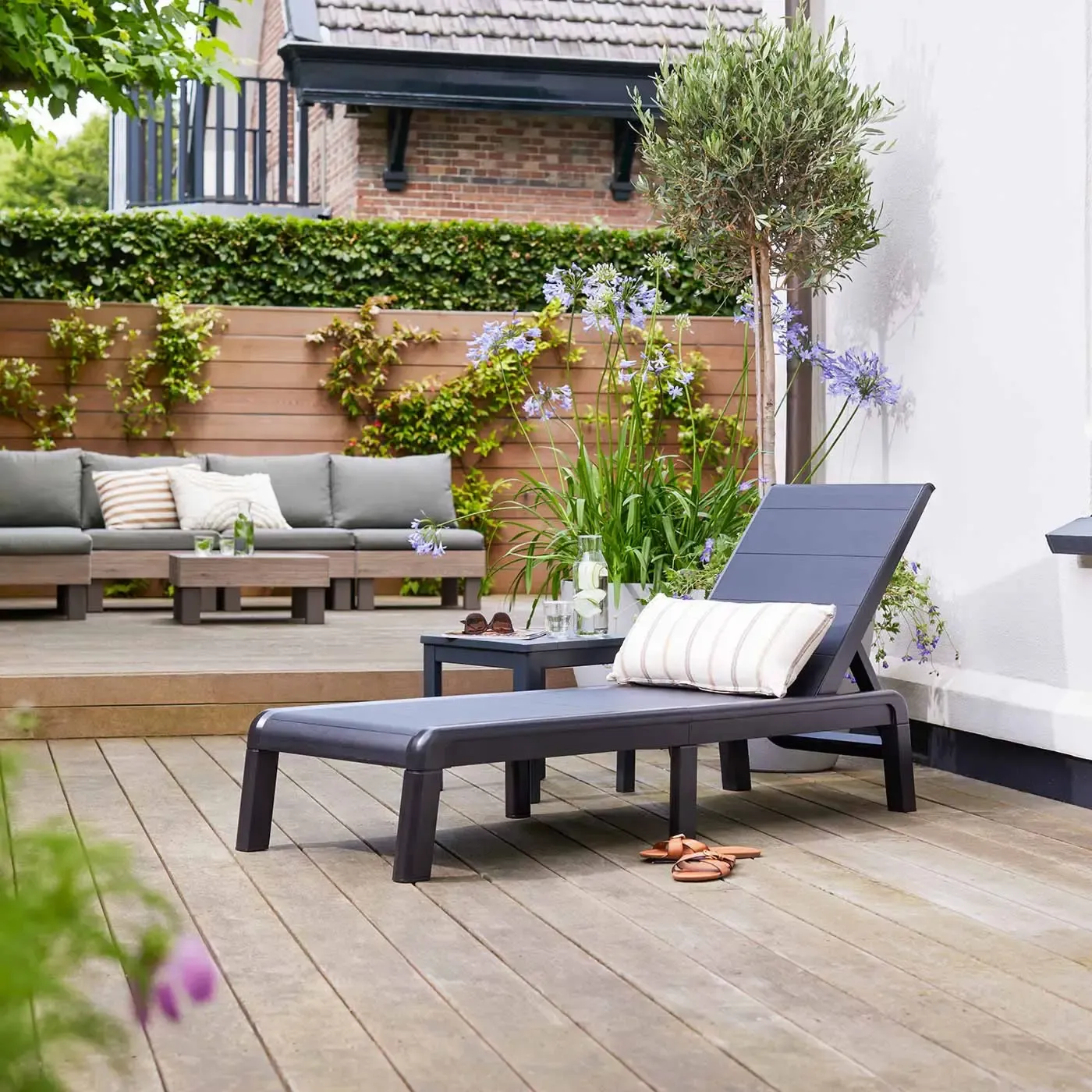 Sdraio con schienale reclinabile, 188x29x58 h cm, color Grafite