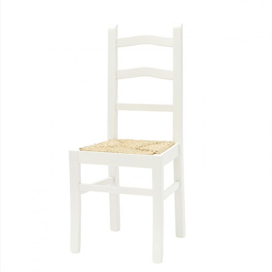Elegante Sedia in legno, laccato Bianco. Comodissima con fondino in Paglia.