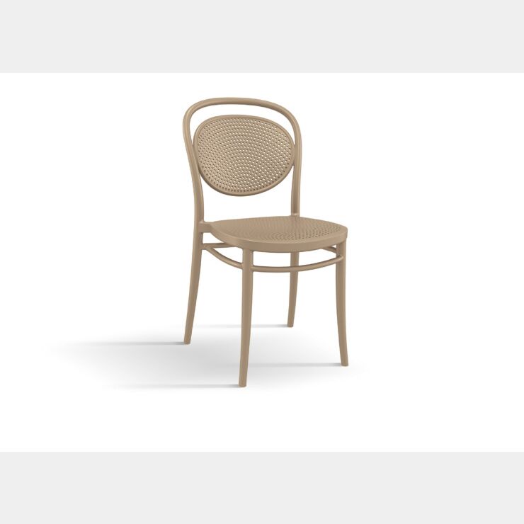 Sedia in polipropilene, per uso interno ed esterno, comoda e versatile perfetta per renedre elegante il vostro giardino; è inoltre dotata di seduta e un particolare schienale in resina forata.