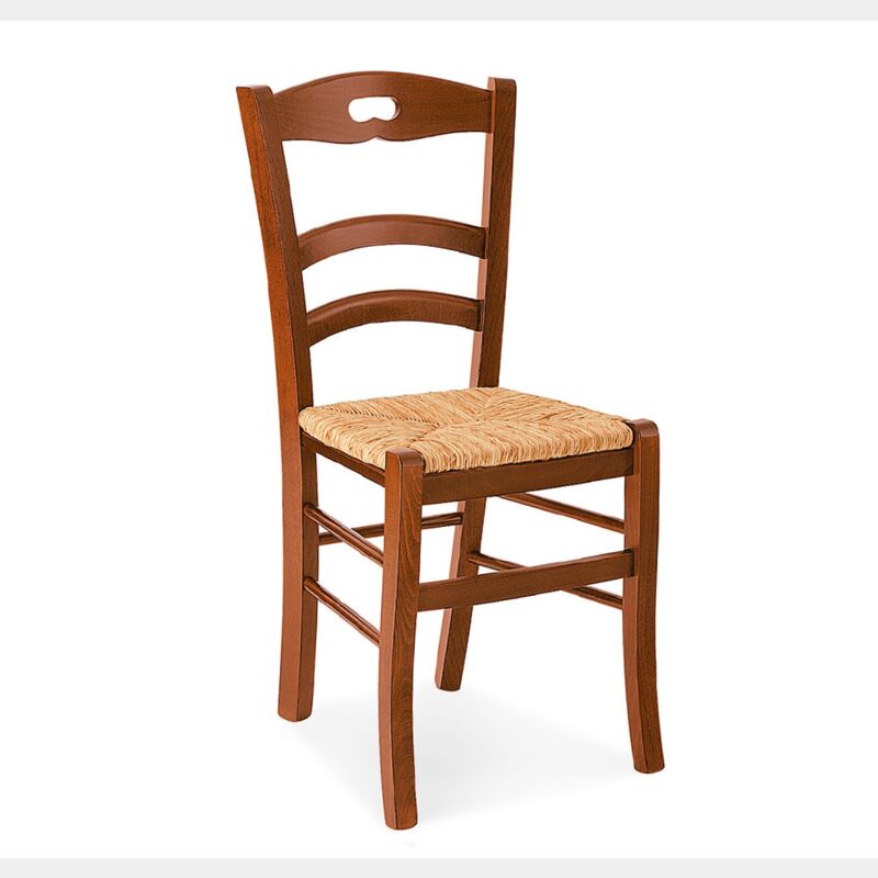 Sedia in legno finitura noce con seduta in paglia