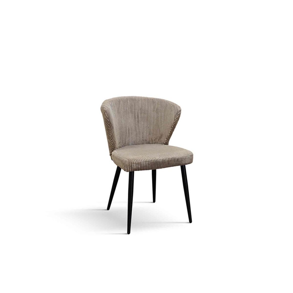 Sedia moderna in velluto colore Tortora con struttura in metallo nera, una seduta classica e all'avanguardia, funzionale e molto comoda. Il suo schienale è rivestito in velluto a coste, e la sua forma è progettata per adattarsi al nostro corpo e rendere la seduta piacevole e confortevole.