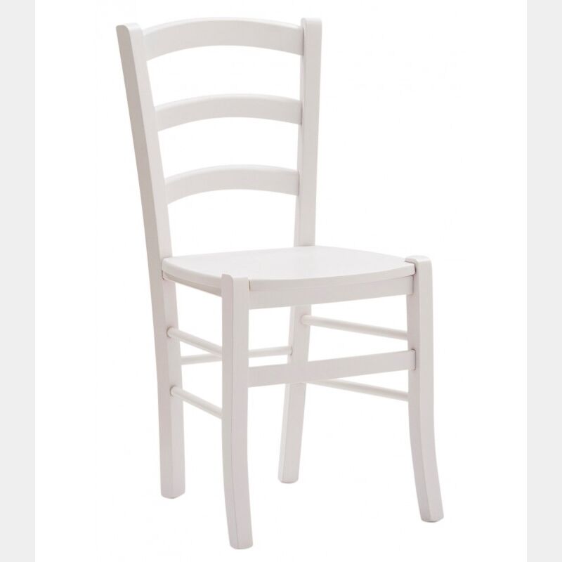 La sedia presenta la struttura e il fondino in legno, laccato bianco.