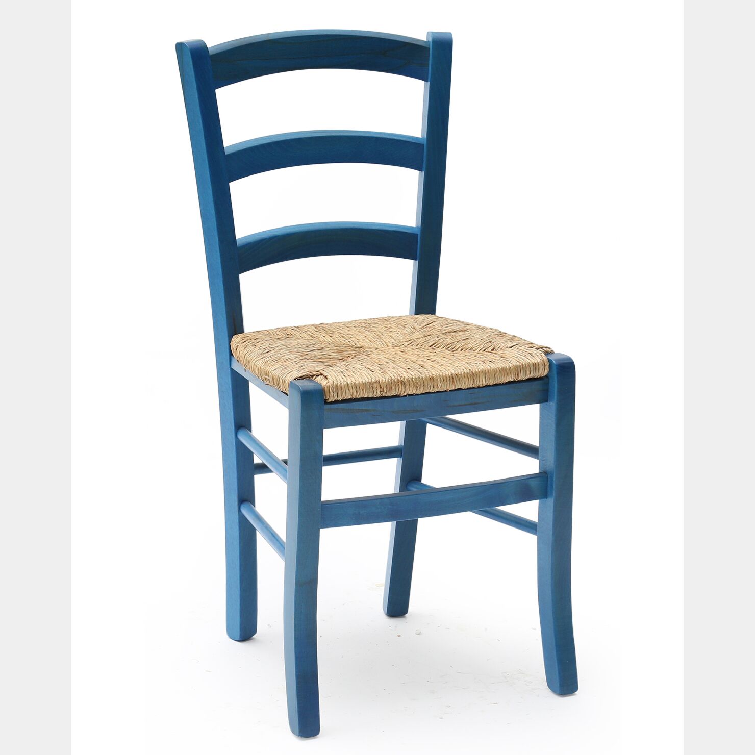 Sedia Paesana Venezia con fondino in paglia, Anilina Blu
