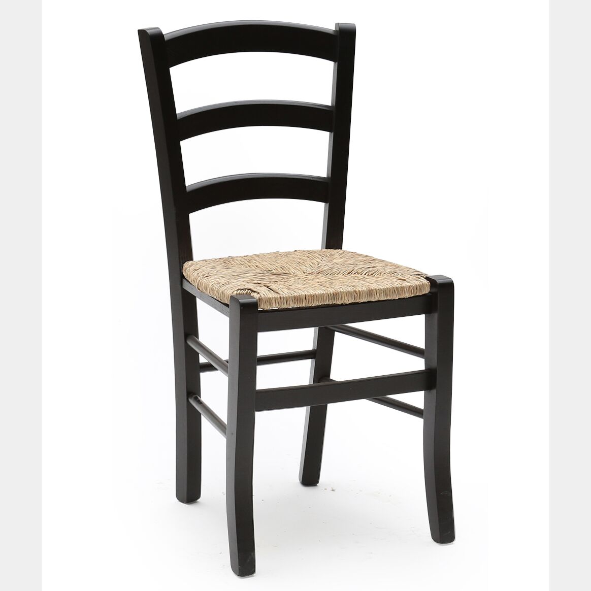 Sedia Paesana Venezia con fondino in paglia, Anilina Nero