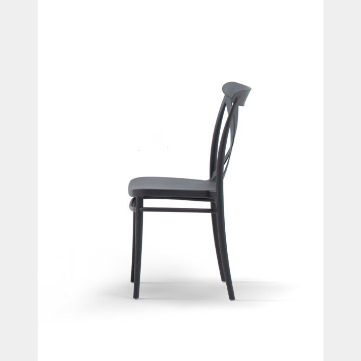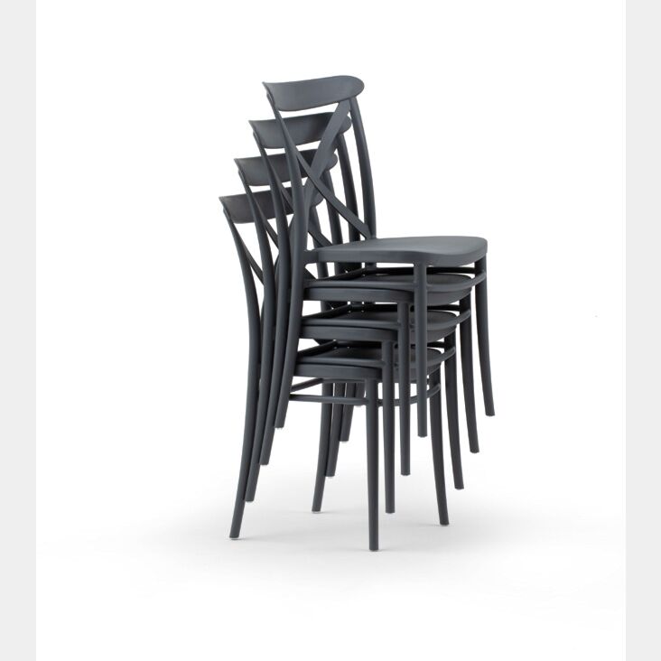 Sedia in polipropilene adatta a ambiente interno ed esterno, colore Grigio antracite, dalle linee classiche e versatili.