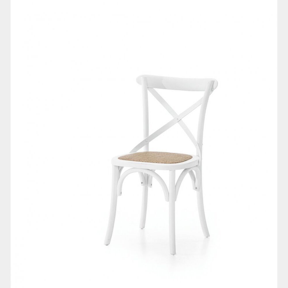 Sedia vintage in olmo laccato bianco con seduta in rattan naturale
